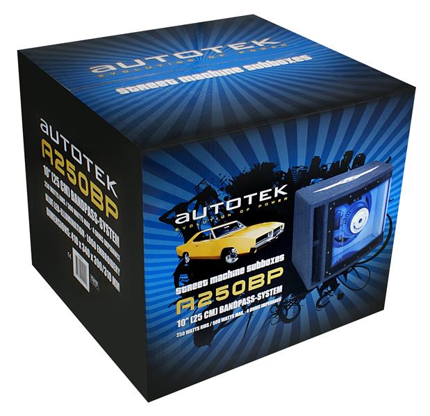 25cm Subwoofer im Bandpassgehäuse für druckvolle und saubere Basswiedergabe. Sehr gute Kombination mit den Autotek Endstufen und Lautsprechern möglich.