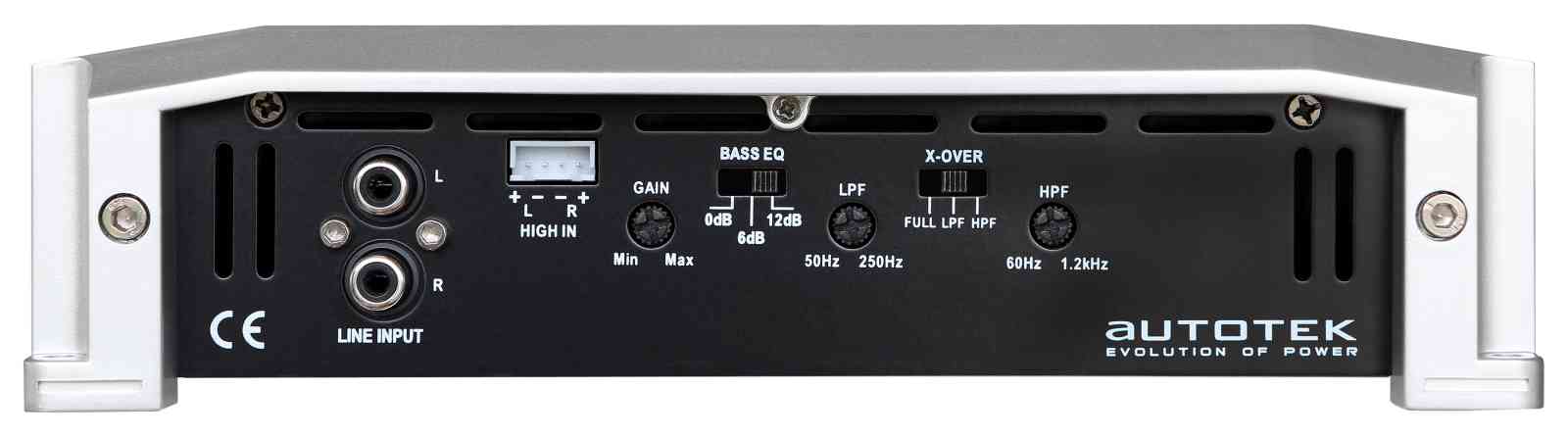 2 x 75 / 125 Watt RMS an 4 / 2 Ohm 1 x 250 Watt RMS gebrückt - Highpass 60-1200 Hz - Lowpass 50-250 Hz - Bass EQ 0/6/12 dB - High Level Inputs
