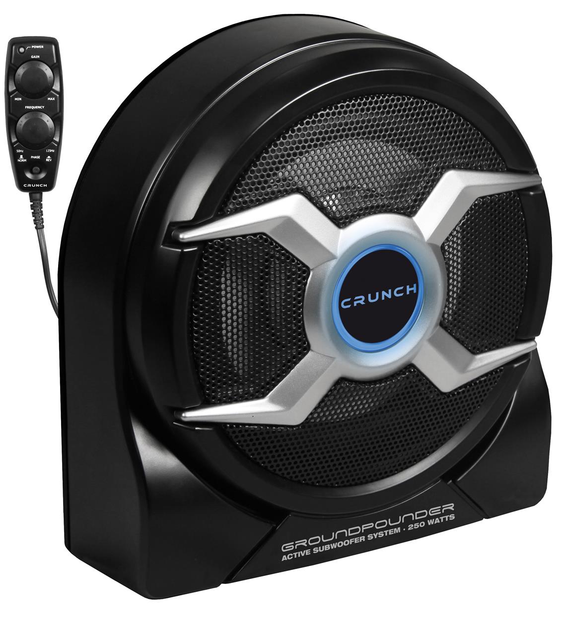 Leistung 125 Watt RMS - 250 Watt max. - 20 cm Subwoofer mit 20 Hz Subsonicfilter - Cinch Eingang - Hochpegel-Eingang - Auto-Turn-On - bel. Crunch-Logo - Inkl. Bass-Remote mit folgenden Einstellmöglichkeiten: -stufenlos Lowpass 50-125 Hz und Basspegel -umschaltbares Phase Shift 0/180° per Taster