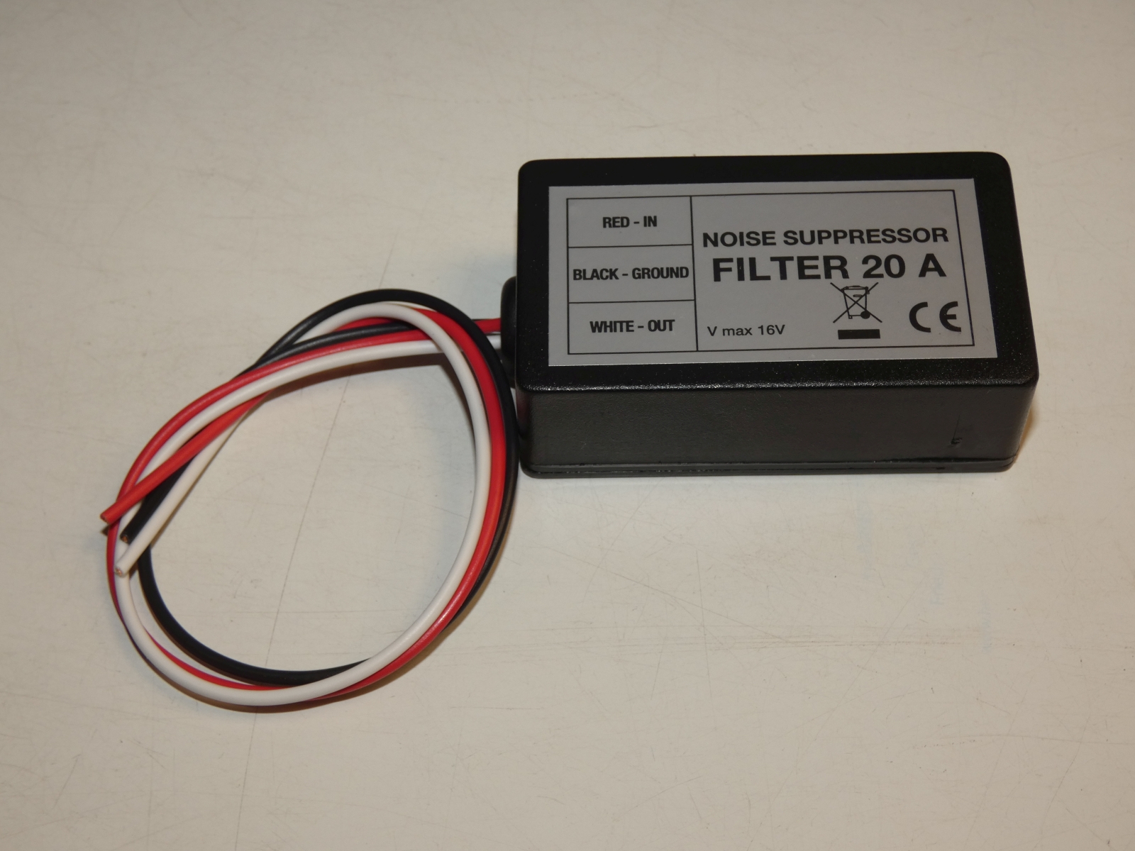 Entstörfilter bis 20A. Der Entstörfilter wird in die Stromleitung zum Radio oder Funkgerät eingeschleift und beseitigt Bordnetzgeräusche. Einsatz bis 20A. Verpackungseinheit = 1 Stück