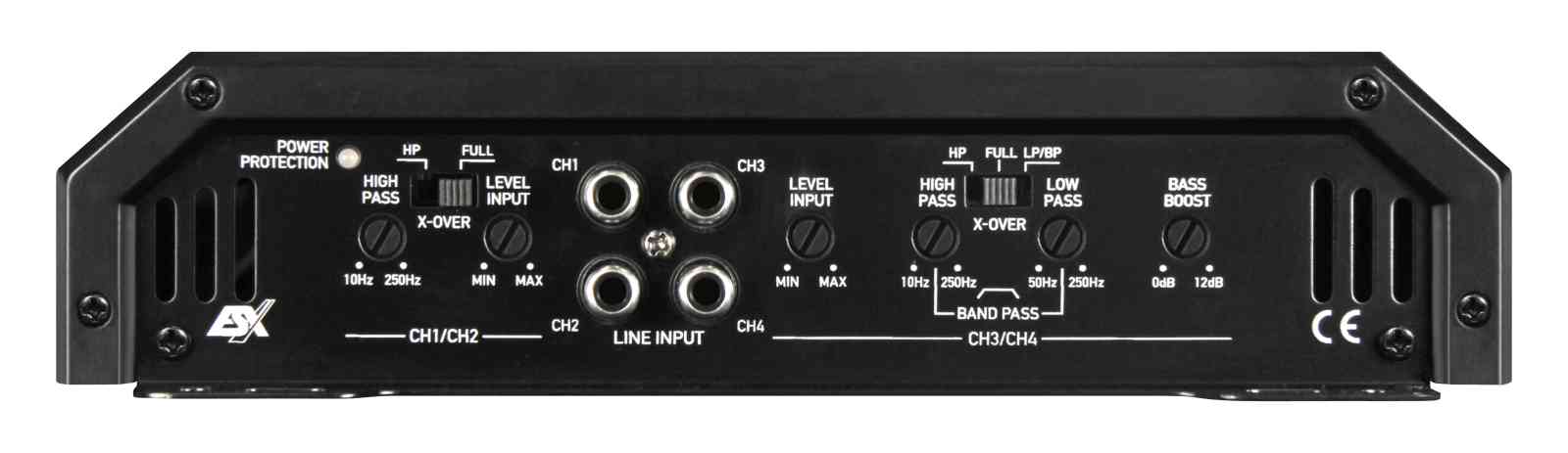 4 x 60 / 100 W RMS @ 4 / 2 ? 2 x 200 Watt RMS gebrückt @ 4 ? - 2 x Highpass 10-250 Hz - Lowpass 50-250 Hz - Bandpass-Mode - Bass-Boost 0-12 dB (CH3/4) - 61% Wirkungsgrad