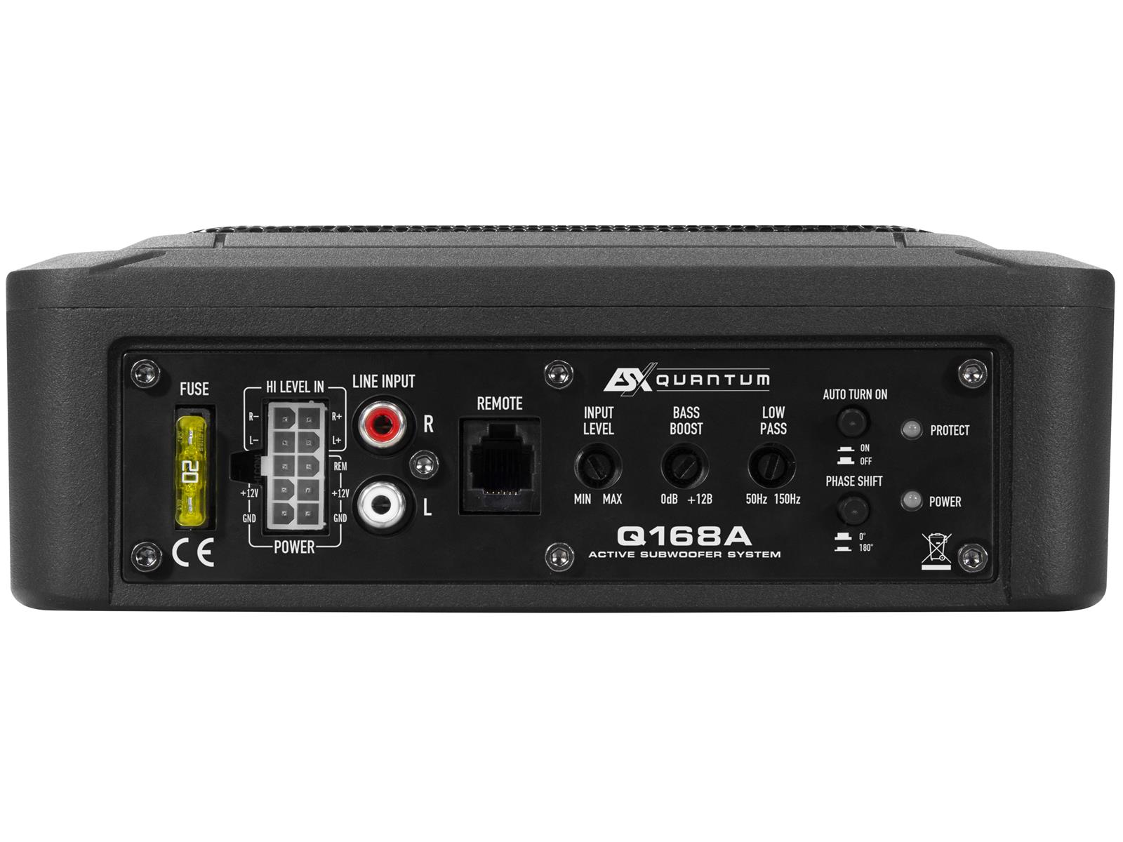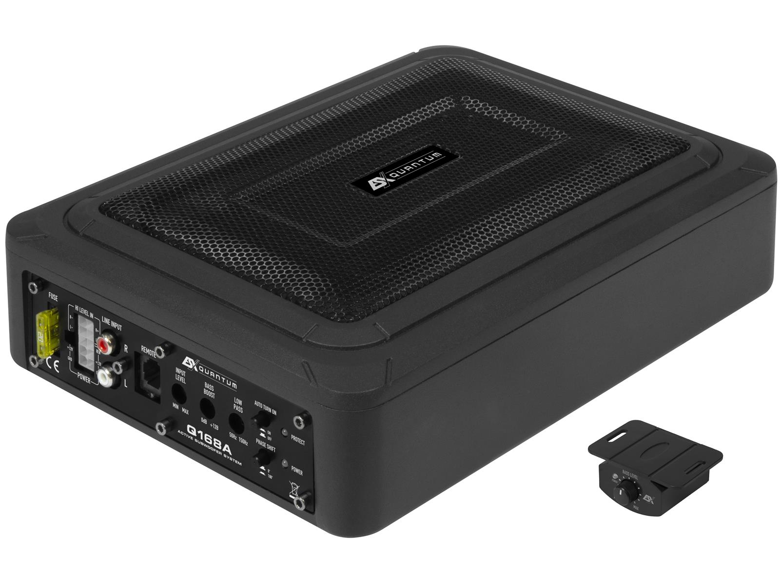 6x8" (15x20 cm) Aktiv-Box 100 W RMS / 200 W max. - Lowpass 50-150 Hz - Subsonic 30 Hz - Phasenschalter 0°/180° - Bass-Boost 0-12dB @ 50 Hz - Cinch Inputs - Auto Turn-On via High Level Inputs - inkl. beleuchteter Bass Remote