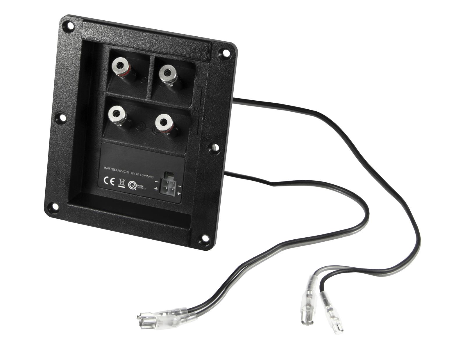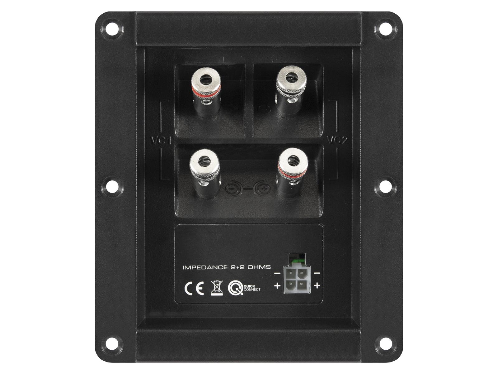 4 Pol Anschlußterminal zum Einbauen in eine Bass-Box. Gut geeignet für Dual-Voice-Coil Subwoofer. Zusätzlich mit 4 Pol Molex "QUICK-CONNECT" Anschluss.