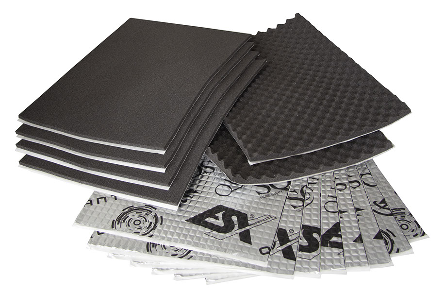 Komplettpaket zum Dämmen von Fahrzeugtüren. Paket beinhaltet: 8x 500x370 mm Alubutyl QRM18 (Verlustfaktor 0,23) 4x 500x370 mm Schaum QSC7 2x 500x370 mm Schaum QSC15