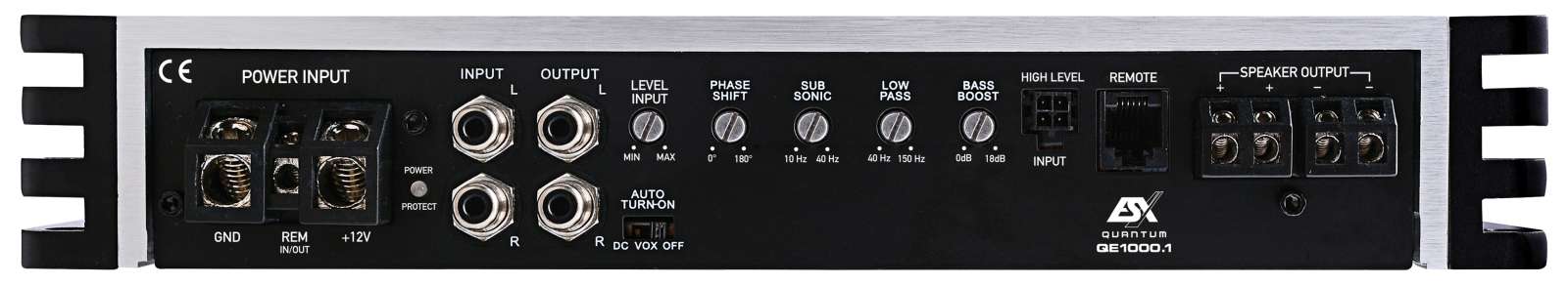 1 x 350 / 600 / 1.000 W RMS @ 4 / 2 / 1 ? (Class D) • Subsonic 10 - 40 Hz • Lowpass 40 - 150 Hz • Bass-Boost 18 dB @ 40 Hz • Phase-Shift 0-180° • Line-Outputs • inkl. Bass-Remote • Start/Stopp fähig • High Level Inputs mit EPS • Auto Turn-On • Wirkungsgrad 92%