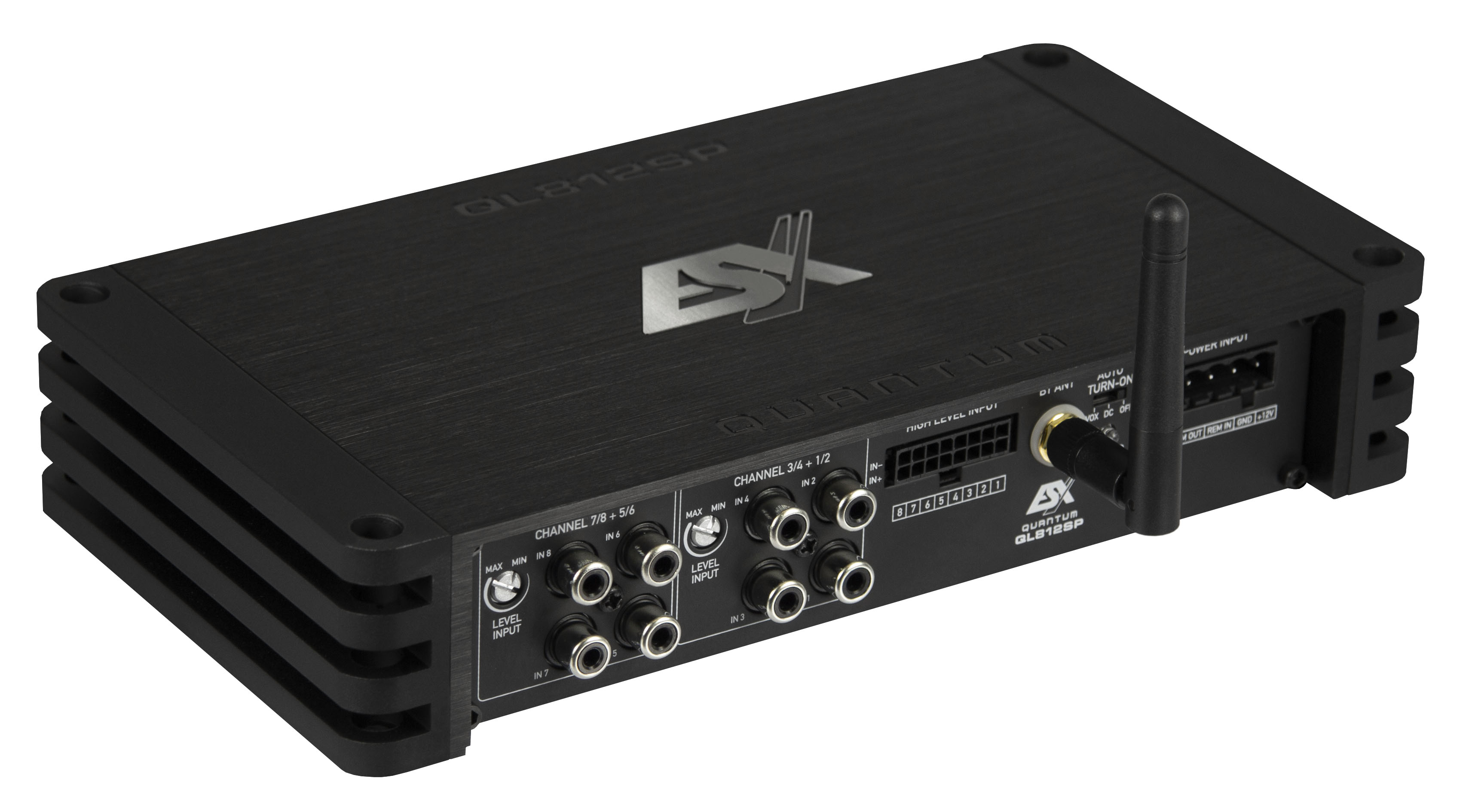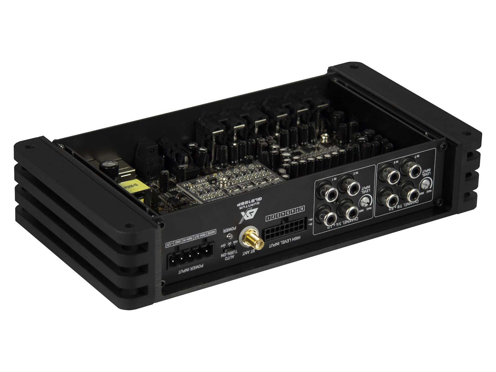 12 Kanal DSP im QL Gehäuse mit BT "Stand-Alone" 32 Bit 294 MHz 12-Kanal DSP mit 96kHz HiRes Audio - Eingänge: 8 x Cinch 6 x Highlevel (bis 40 Volt RMS) und "EPS-PRO"-Schaltung 1 x externer Hardware Eingang für ein Setting (z.B. Cabrio offen/geschlossen) - Ausgänge: 12 x Cinch (6 V) - Weltneuheit, 4 x 31 Band Staging Equalizer mit einzigartiger und revolutionärer Balance Funktion - Laufzeitkorrektur (Time-Delay) in 3,4 mm Schritten mit Gruppen Funktion - 8 DSP Setups speicherbar - 248 Band Equalizer ParaEQ, HighShelf, LowShelf - 90 Band Equqlizer ParaEQ, HighShelf, LowShelf (120 Band mit BT-D) - Bluetooth? Funktion für Audio Streaming/App: BT-D - Fernbedienung RC-DQ (optional)