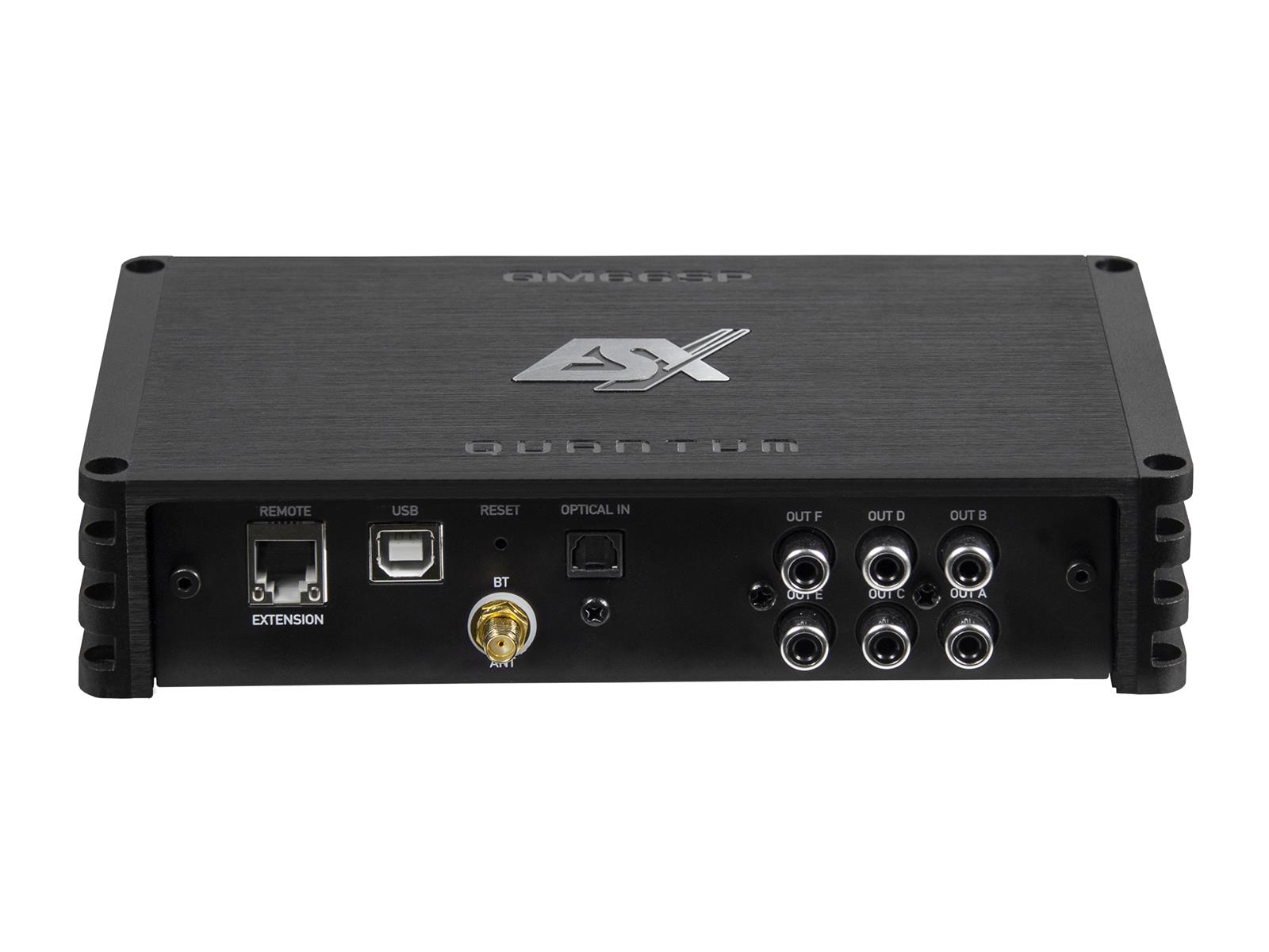 6 Kanal DSP im QM Gehäuse mit BT "Stand-Alone" 32 Bit 294 MHz 6-Kanal DSP mit 96kHz HiRes Audio - Eingänge: 6 x Cinch 6 x Highlevel (bis 40 Volt RMS) und "EPS-PRO"-Schaltung 1 x Bluetooth Audio (und APP Steuerung) 1 x externer Hardware Eingang für ein Setting (z.B. Cabrio offen/geschlossen) - Ausgänge: 6 x Cinch (6 V) - Laufzeitkorrektur (Time-Delay) in 3,4 mm Schritten mit Gruppen Funktion - 8 DSP Setups speicherbar - 186 Band Equalizer ParaEQ, HighShelf, LowShelf - 90 Band Equqlizer ParaEQ, HighShelf, LowShelf (120 Band mit BT-D) - Bluetooth? Funktion für Audio Streaming/App - Fernbedienung RC-DQ (optional)
