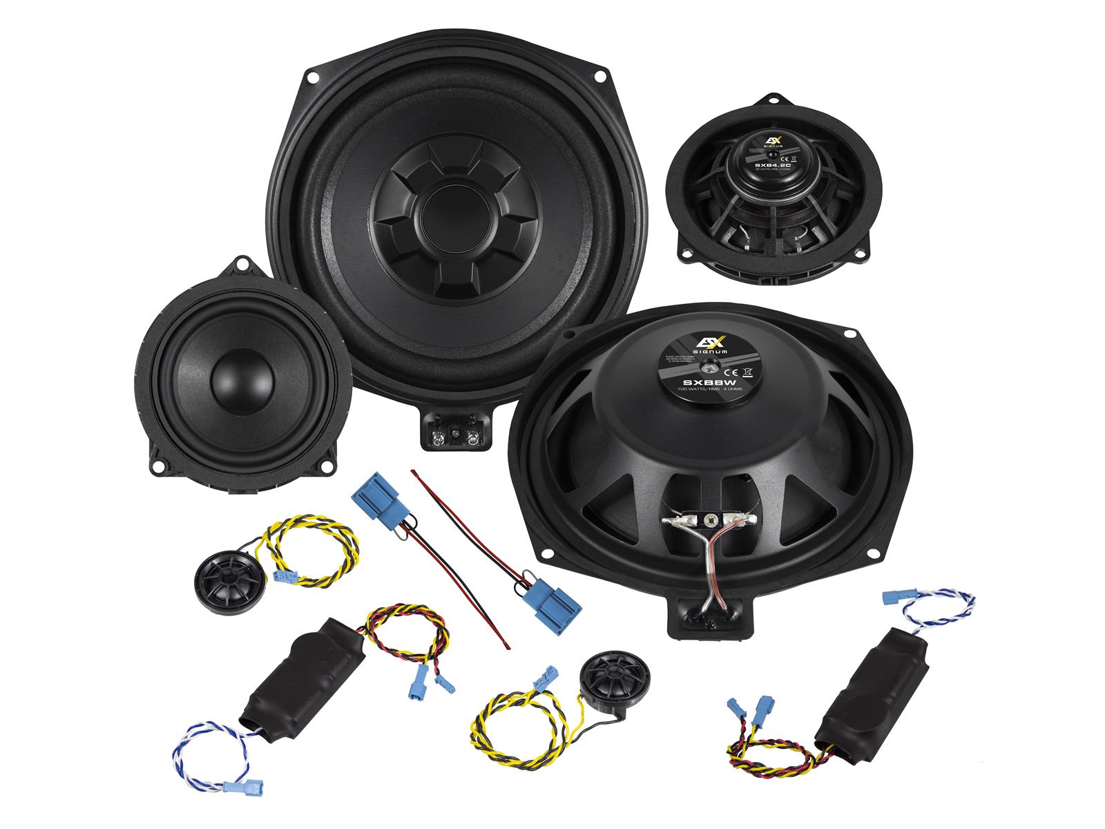 Leistung 2x 60/120 + 2x 100/200 W RMS / max. - Impedanz 4 ? - 20 cm 3-Wege System - teilaktiv - 25 mm Gewebehochton mit Neodym-Magnet - 100 mm Mitteltöner mit Papier-Membran - 2-Wege Frequenzweiche incl. Kabel - Frequenzbereich 75 - 22000 Hz - Mitteltöner: Einbautiefe 30 mm - Einbauöffnung 98 mm - 217 mm Sandwich Composite Bass mit Neodymmagnet - Bass: Einbautiefe 51 mm - Einbauöffnung 180 mm - Frequenzbereich 30 - 300 Hz - 38,5 mm (1,5") Schwingspule - Passend für viele BMW E/F/G und MINI R/F Modelle Set besteht aus: SXB4.2C; SXB8W