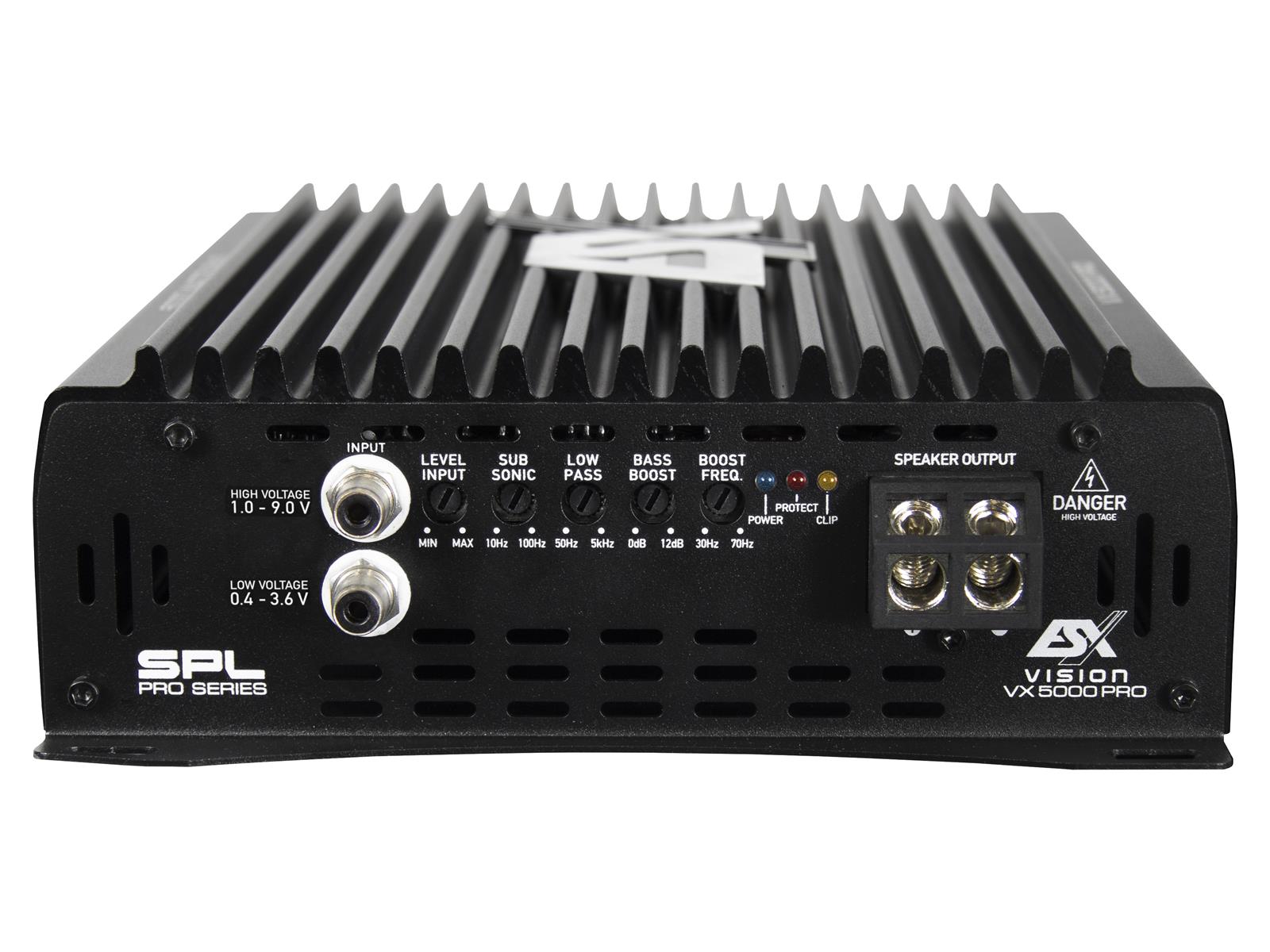 Mono Ultra Class D Verstärker 1 x 1.800 / 3.300 / 5.000 W RMS @ 4 / 2 / 1 ? • Subsonic 10-100 Hz • Lowpass 50-5.000 Hz • Bass Boost 0-12 dB @ 30-70 Hz • Cinch Niederpegel Eingang 0.4-3.6 V • Cinch Hochpegel Eingang 1.0-9.0 V • optionale universal Bass-Pegel-Fernbedienung HF-RC1