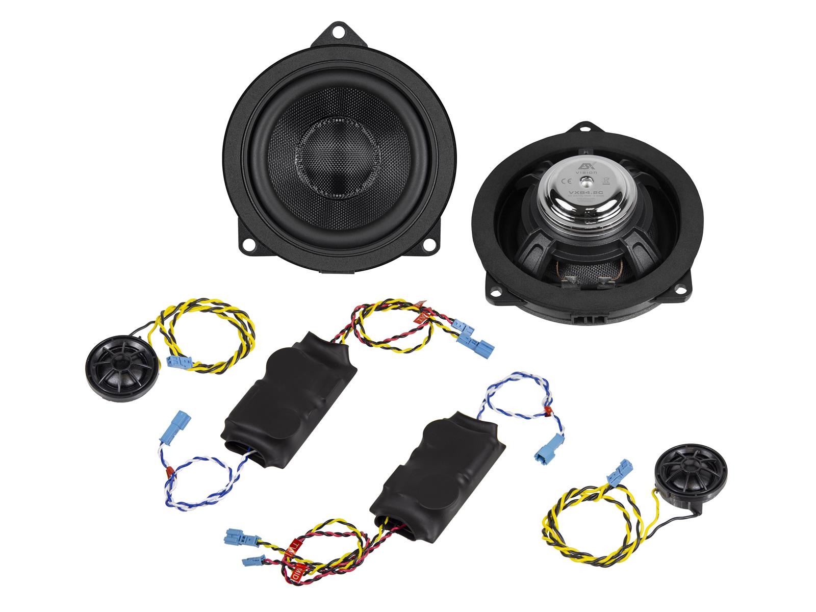 Leistung 60 W RMS / 120 W max. - Impedanz 4 ? - 10 cm 2-Wege Komponenten System - 25 mm Gewebehochton mit Neodym-Magnet - 100 mm Mitteltöner mit Glasfaser-Membran und Neodym-Magnet - 2-Wege Frequenzweiche incl. Kabel - Frequenzbereich 75 - 22000 Hz - Mitteltöner: Einbautiefe 32 mm - Einbauöffnung 98 mm - Passend für viele BMW E/F/G und MINI R/F Modelle