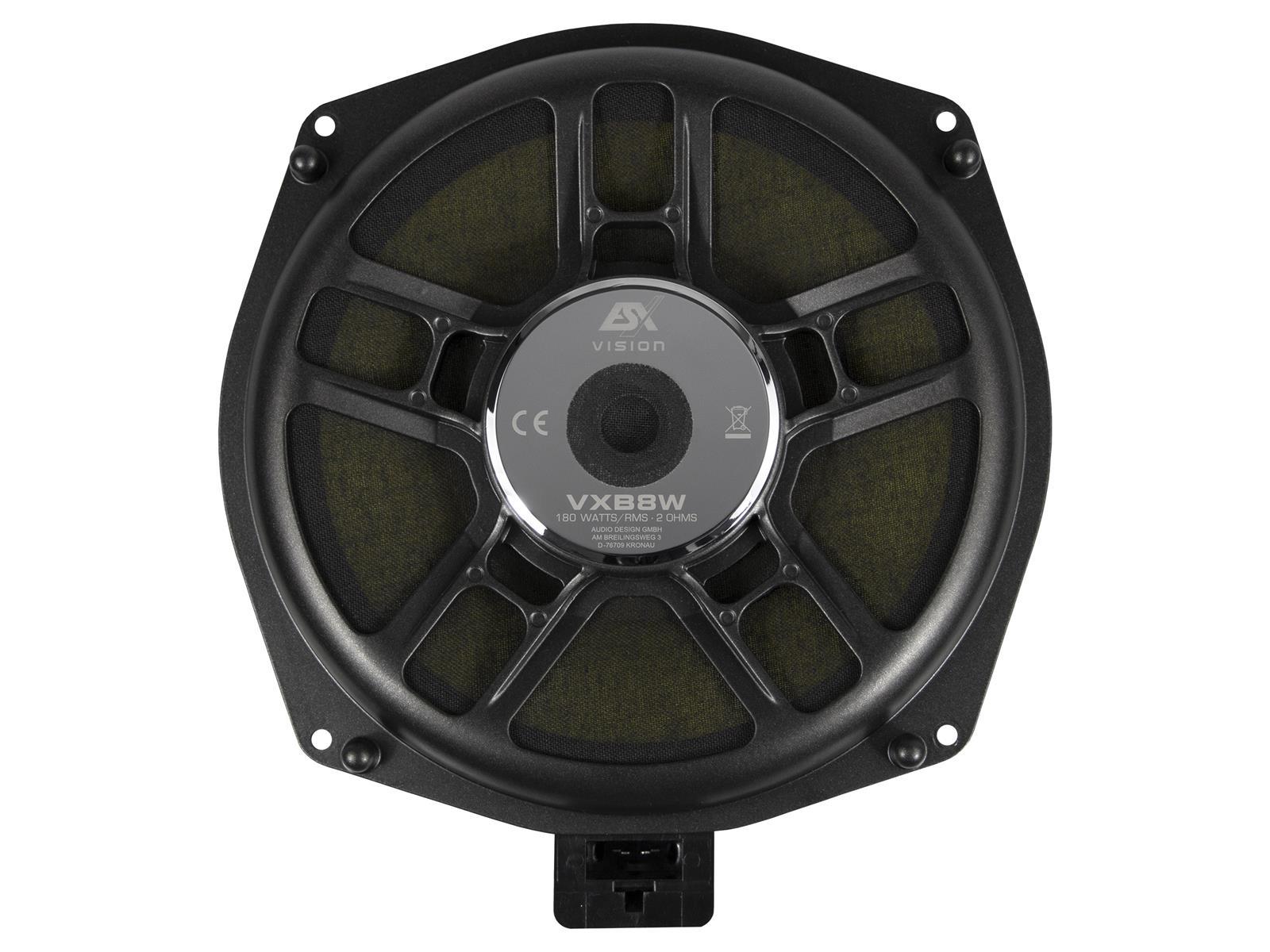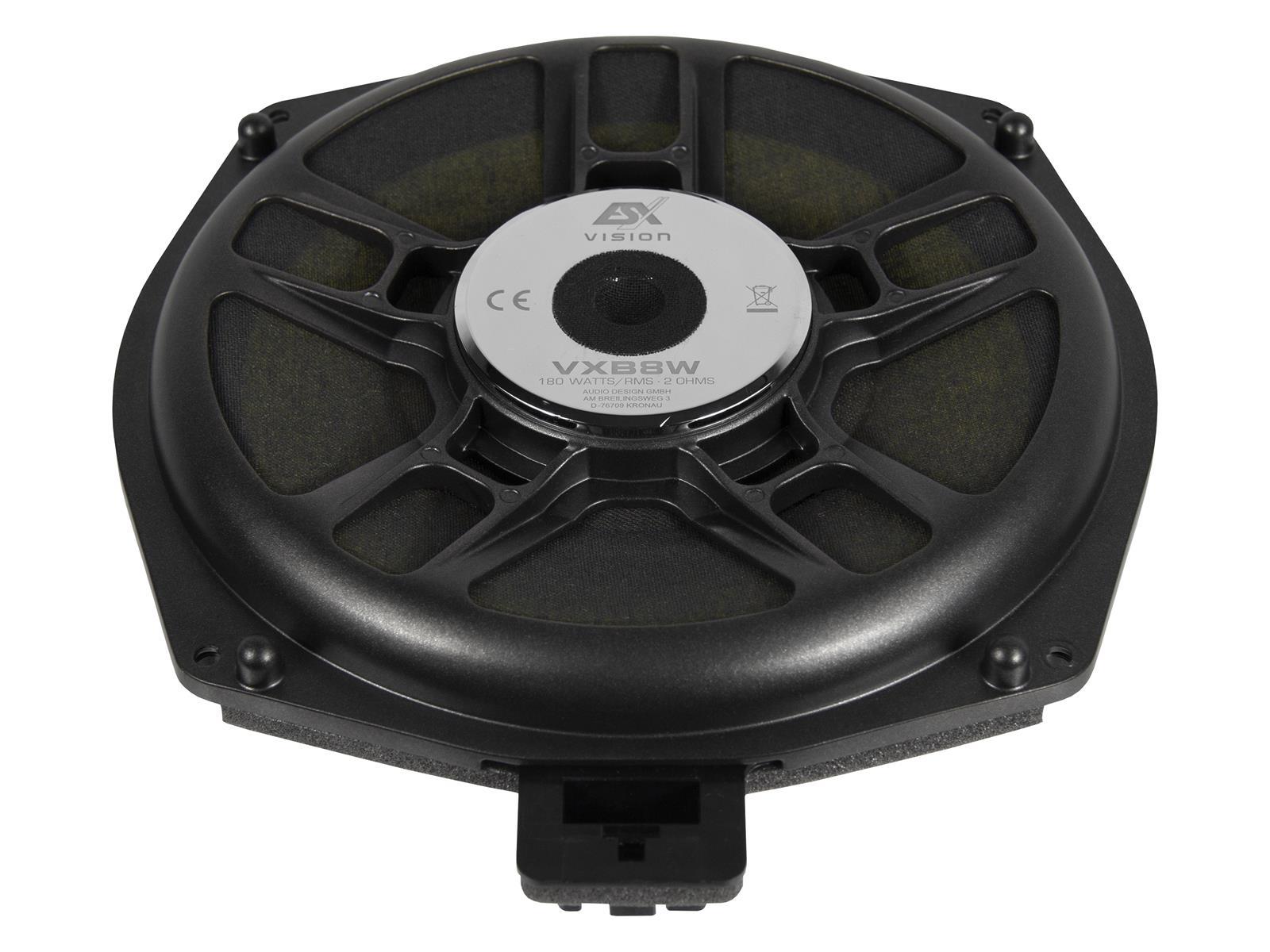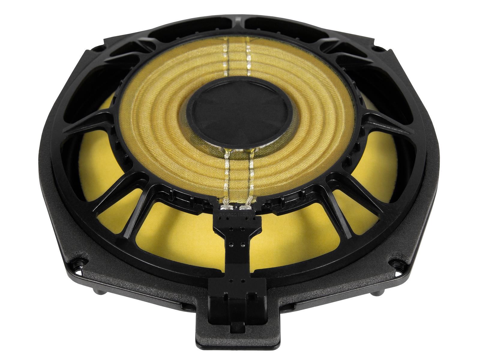 Leistung 180 W RMS / 300 W max. - Impedanz 2 ? - 217 mm Sandwich Composite Bass mit Neodymmagnet - Bass: Einbautiefe 31 mm - Einbauöffnung 200 mm - Frequenzbereich 30 - 300 Hz - 50 mm (2") Schwingspule - Passend für viele BMW E/F/G und MINI R/F Modelle