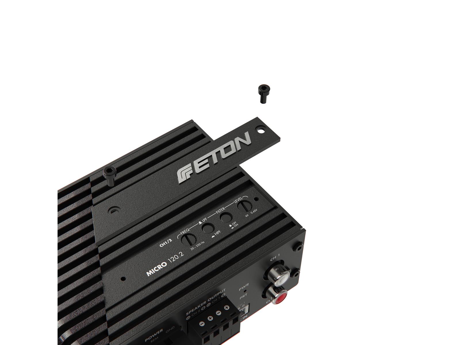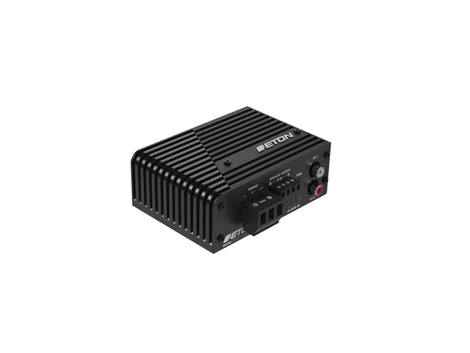 MICRO 120.2 ist die neue Endstufe im Micro-Format. Klein, praktisch, stark und sie beeindruckt in Zahlen: 110 x 80 x 42 mm! Minimalmasse und dabei maximale Power! 2-Kanal Class-D Verstärkertechnologie mit 2 x 85 W Leistung an 4 Ohm und 2 x 120 W an 2 Ohm können sich sehen lassen. Der neue Problemlöser in Punkto Platz und Leistung besticht durch seine vielen Features: Hi- und Lowpassfilter, einstellbare Aktivweiche (20 - 250 Hz), regelbare Eingangsempfindlichkeit 0.45V - 6 V. Auto-Sense, für Fahrzeuge mit Start-Stopp Funktion geeignet. Modulare, einstellbare Befestigungshalter. Innovatives Kühlrippendesign und moderne Anschlussstecker runden die Ausstattung der neuen Micro Endstufe ab. Hier kommt zusammen was, zusammenkommen muss: Leistung trifft auf bestmögliche Installation und smarte Abmessungen - MICRO 120.2.