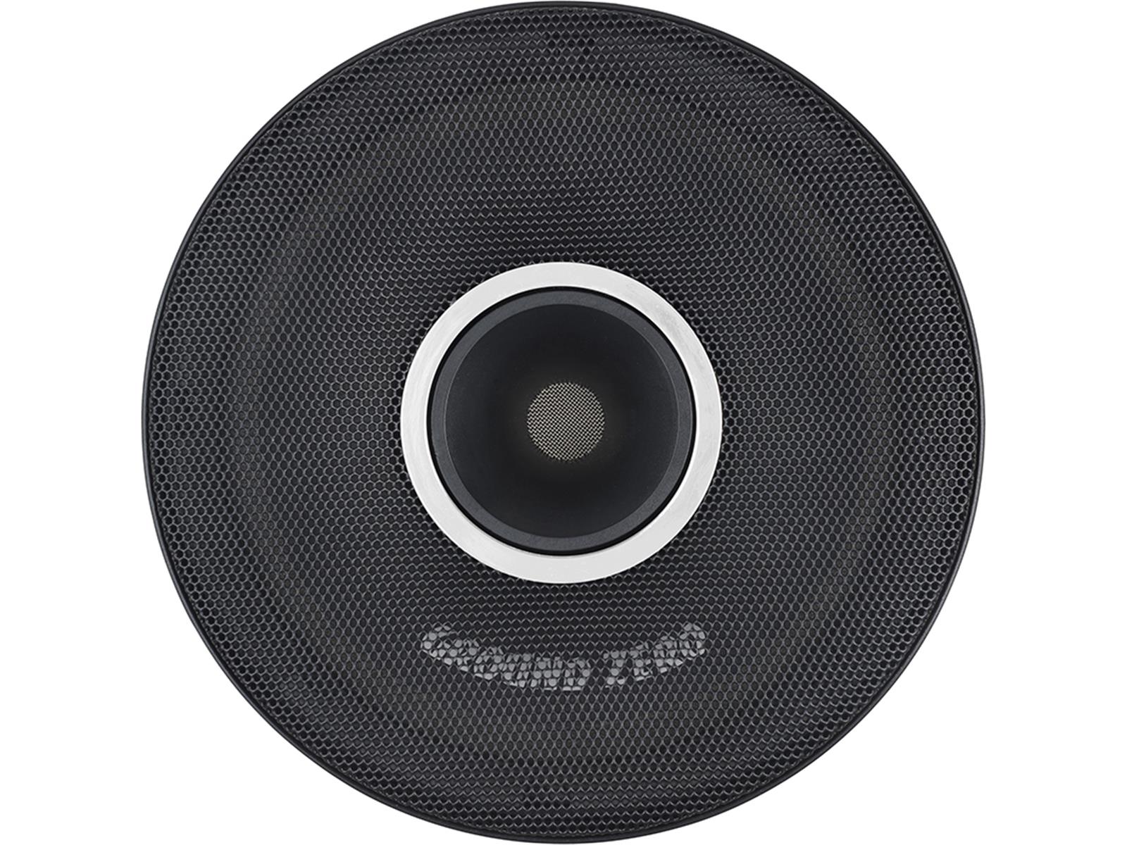 16,5 cm 6,5" competition 2 way coax speaker 4 ohm, 125 / 300 W, SPL 100 dB, 180 Hz - 25 KHz 40 mm / 1.57" copper-clad aluminum round wire voice coil 35 mm / 1.38" PEN dome compression tweeter, ABS horn Fiber reinforced paper cone, Extra flat aluminum cast basket Including 6 dB crossover STÜCKPREIS