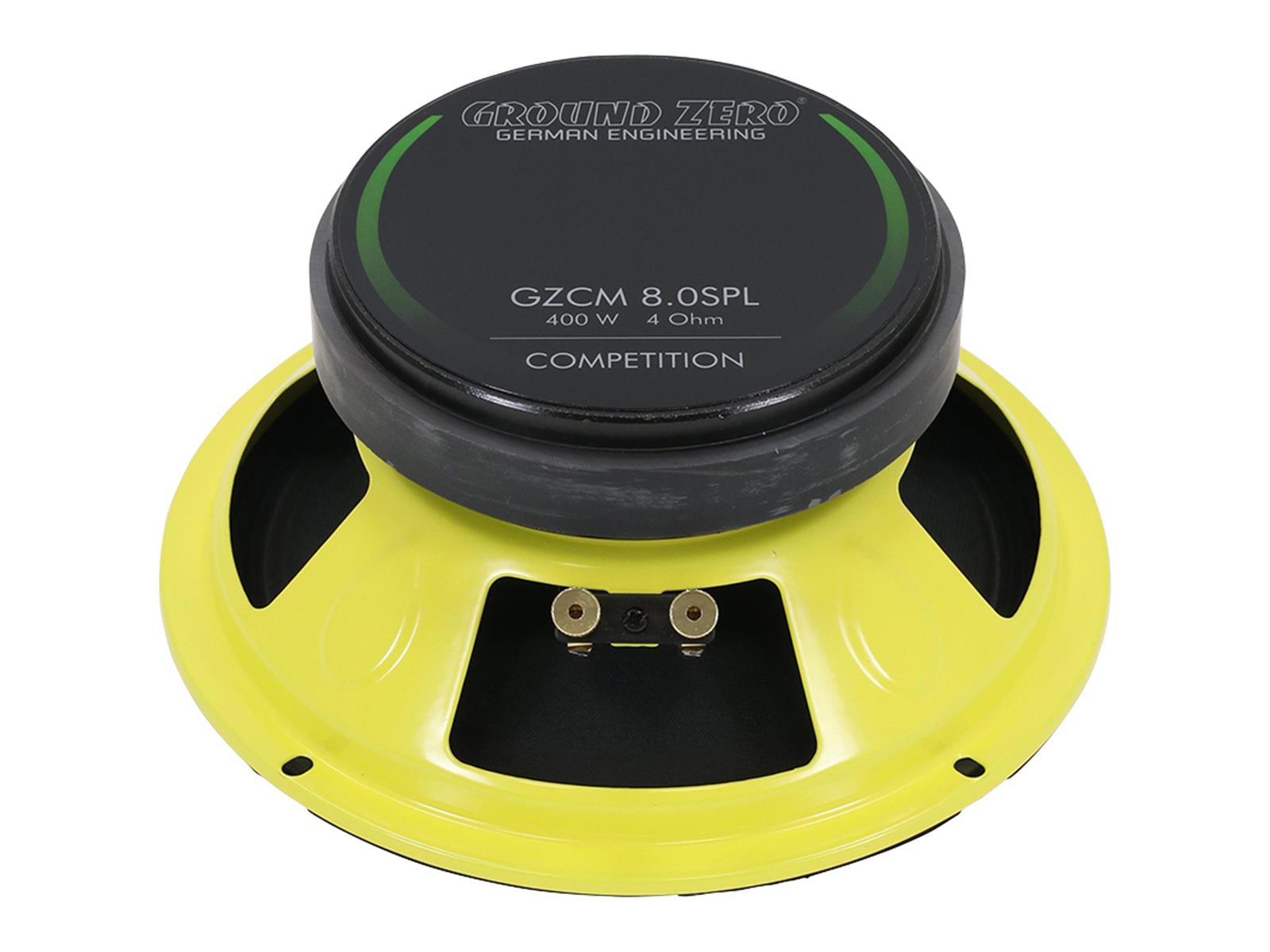COMPETITION Realistic Stage Atmosphere Die Erfahrung einer echten Konzertatmosphäre oder eines Clubgefühls bedarf professionell hoher SPL-Pegel. Dies erfordert jedoch sehr spezielle und leistungsstarke Lautsprecher und Verstärker. Die Entwicklungsabteilung von GROUND ZERO macht keine Kompromisse, wenn der Zweck des Produkts so klar ist. Aus diesem Grund ist ein COMPETITION-Produkt die richtige Wahl für anspruchsvolle Kunden mit hohen SPL-Erwartungen. COMPETITION Lautsprecherkomponenten Für die Hochfrequenz- und Mitteltonwiedergabe steht in der COMPETITION Serie eine Vielzahl an hocheffizienten Fernfeld-Kompressions-Hochtönern sowie verschiedene Mitteltöner zur Verfügung. Letztere können sowohl bei Free-Air Anwendungen als auch in Horn- oder Bassreflexsystemen genutzt werden. 200 mm hoch effektiver Mitteltonlautsprecher mit verstärkter Papiermembran und kurzer CCAW Schwingspule, inkl. Gitter 200 mm Hochleistungs-Mitteltonlautsprecher 38 mm CCA Schwingspule Faserverstärkte Papiermembran Ferrit Magnet Resonanzarmer Stahlkorb Papier Dustcap Inkl. Schutzgitter 1 Stk. / Verpackung Ausführung High-Power Mitteltonlautsprecher Durchmesser 200 mm Belastbarkeit (RMS/max.) 150 / 400 Watt Impedanz 4 Ohm Wirkungsgrad 95 dB Frequenzgang 140 Hz - 10 kHz Schwingspule 38 mm CCA Einbau Ø 182 mm Einbautiefe 87 mm, 92 mm Resonanzfrequenz (Fs) 91 Hz