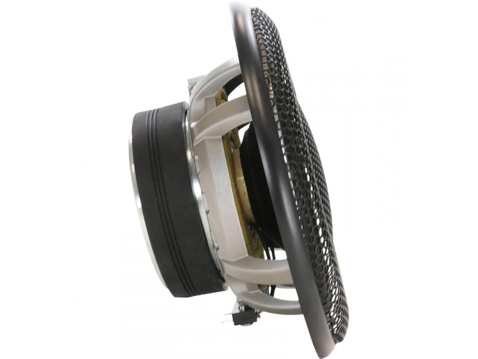 HYDROGEN Lautsprecherkomponenten Für die Kombination mit den Verstärkern und Subwoofern von GROUND ZERO HYDROGEN fehlten den Kunden eine Zeit lang passende Lautsprecherkomponenten und -systeme. Basierend auf einem speziell konstruierten Aluminium-Gusskorb haben die Ingenieure nun einen kraftvollen 165 mm Tiefmitteltöner mit starkem Ferritmotor und großzügig dimensionierter CCA-Schwingspule realisiert. In Kombination mit einem belüfteten Seidenkalotten-Hochtöner mit Koppelvolumen und einer passiven Frequenzweiche ausgestattet, ist das neue 2-Wege-System der HYDROGEN-Serie für Kunden gedacht, die außergewöhnliche Leistung suchen. Für vollaktive Anwendungen sind die Lautsprecher sind auch jeweils einzeln erhältlich. 165 mm High-Power Tief/Mitteltonlautsprecher mit geschöpfter Papier-Membran 165 mm Tief-/Mitteltonlautsprecher 38 mm CCA Schwingspule Geschöpfte Papier-Membran Ferrit Magnet GZ-Design Aluminum-Druckgusskorb Hochbelastbare 4 Ohm Ausführung Linearisierter Antrieb Inkl. GZ-Design Hexagon-Schutzgitter 1 Paar / Verpackung Ausführung High-Power Tief-/Mitteltonlautsprecher Durchmesser 165 mm Belastbarkeit (RMS/max.) 120 / 180 Watt Impedanz 4 Ohm Wirkungsgrad 87 dB Frequenzgang 40 Hz - 5000 Hz Schwingspule 38 mm CCA Membran Ausführung Geschöpftes Papier Einbau Ø 144 mm Einbautiefe 69 mm Resonanzfrequenz (Fs) 49.4 Hz
