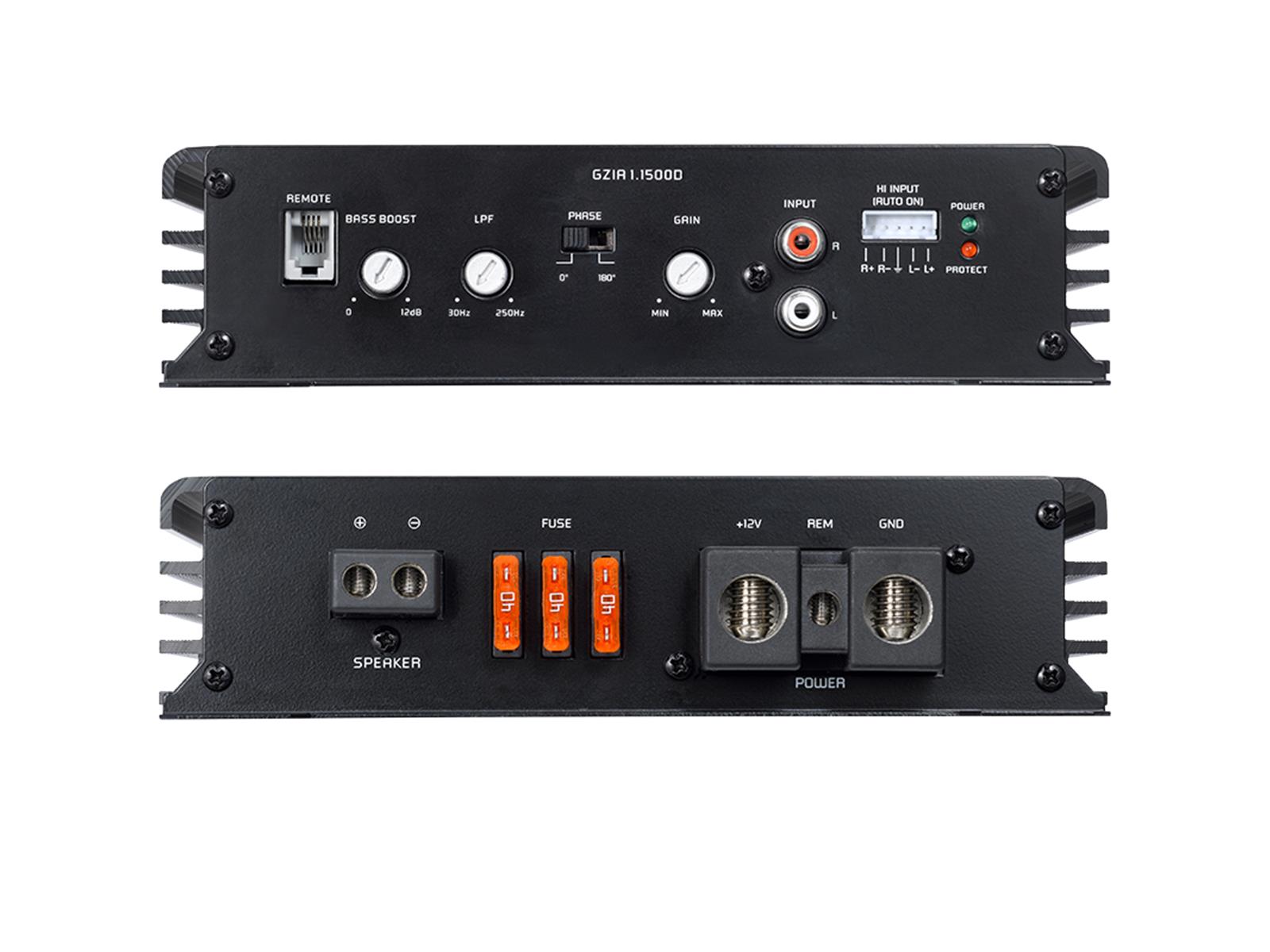 High-Quality Verstärker Mono Verstärker mit Class D Schaltung, integrierter Aktivweiche und schwarz eloxiertem Kühlkörper 1-Kanal Leistungsverstärker für Subwoofer Class D Technologie Variable Aktivweiche, Phasenanpassung und Bass Boost Stabiles Netzteil Großzügig dimensionierte Anschlüsse Schwarz eloxierter Kühlköper mit Ground Zero Schriftzug Hochpegel-Eingang mit Auto-On Funktion Pegelfernbedienung im Lieferumfang Kanäle: 1 Ausgangsleistung (@ 2?): 1x 775 Watt RMS Ausgangsleistung (@ 1?): 1x 1300 Watt RMS max. Ausgangsleistung (CEA-2006A / 10%THD+N): 1500 Watt Frequenzgang: 10 Hz - 250 Hz LPF (Lowpassfilter) Hochpegeleingang / Auto-on Abmessungen (B x L x H)192 x 360 x 49 mm