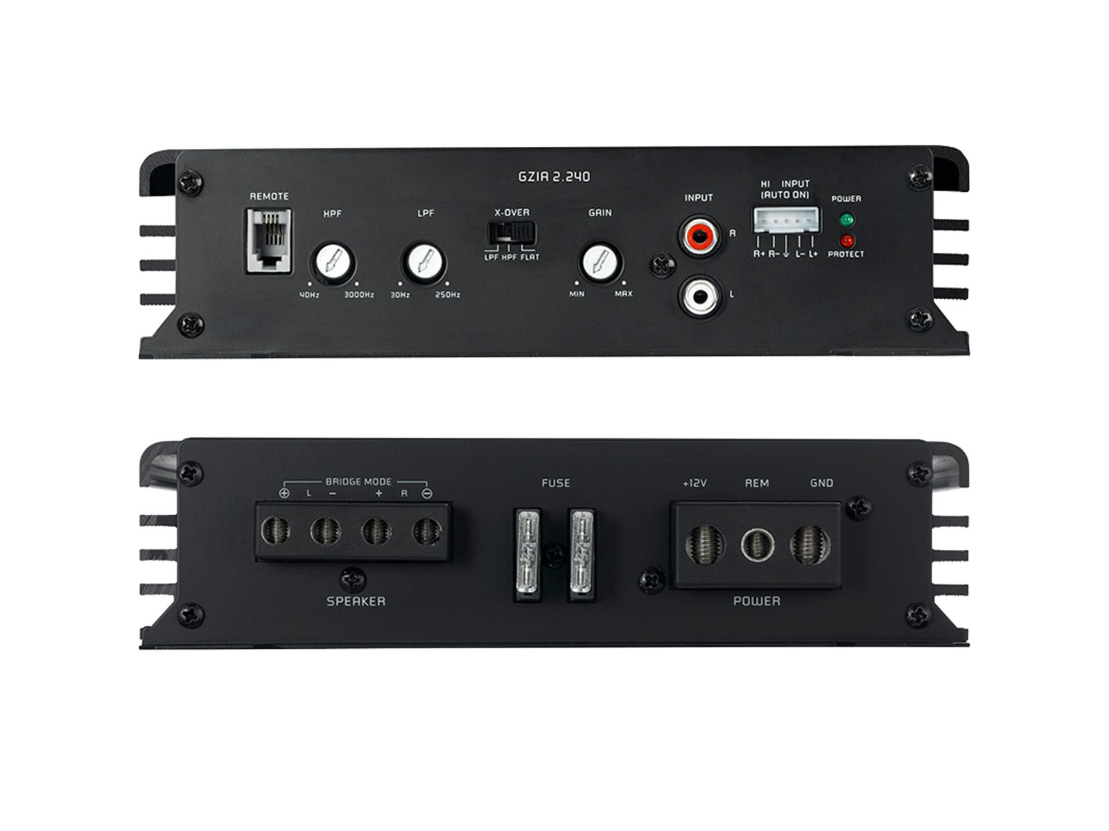High-Quality Verstärker 2-Kanal Verstärker mit Class A/B Schaltung, integrierter Aktivweiche und schwarz eloxiertem Kühlkörper 2-Kanal Leistungsverstärker Class AB Technologie Variable Aktivweiche und Bass Boost Stabiles Netzteil Großzügig dimensionierte Anschlüsse Schwarz eloxierter Kühlköper mit Ground Zero Schriftzug Hochpegel-Eingang mit Auto-On Funktion Kanäle 2 Ausgangsleistung (@ 4?) 2x 150 Watt RMS Ausgangsleistung (@ 2?) 2x 240 Watt RMS max. Ausgangsleistung (CEA-2006A / 10%THD+N) 550 Watt Ausgangsleistung (@ 4?) gebrückt 480 Watt RMS Frequenzgang: 10 Hz - 30 kHz HPF / LPF Hochpegeleingang / Auto-on Fernbedienung optional Abmessungen (B x L x H)192 x 284 x 49 mm