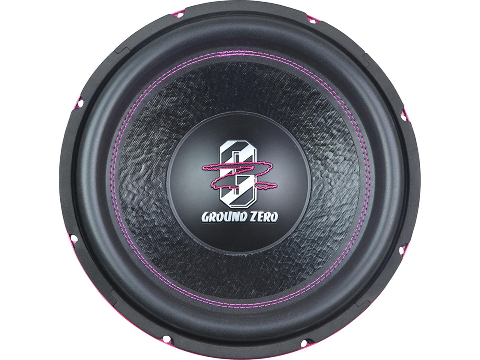 30 cm / 12" subwoofer, 1000 W SPL Power 2 x 2 ohm, 63 mm / 2.5" copper voice coil, Reinforced paper cone, High-Roll V-Shape surround, double layer spider Fs 36.9 Hz, Qts 0.67 SPL, 86 dB Pink colored basket, stitch and GZ logo