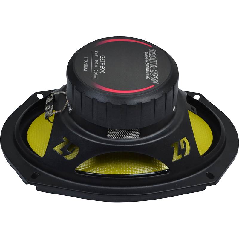 TITANIUM Lautsprechersysteme Die TITANIUM Linie beinhaltet die vor kurzem vorgestellte neue Reihe an koaxialen Lautsprechern und Komponentensystemen mit gelber 3D-HQPP Membran. 6×9" 3-Wege Koaxial-Lautsprechersystem mit strukturierter HQPP-Membran und 3 Ohm Impedanz 3-Wege Koaxial-Lautsprechersystem HQPP Membran mit 3D-Struktur Gummisicke Resonanzarmer Stahlkorb Hocheffiziente 3 Ohm Ausführung 13 mm Mylar Hochtöner 55 mm Mylar Mitteltonlautsprecher Hochton- und Überlastschutz Inkl. Hexagon-Schutzgitter Ausführung 3-Wege Koaxial-Lautsprechersystem Belastbarkeit (RMS/max.) 130 / 190 Watt Impedanz 3 Ohm Wirkungsgrad 92 dB Frequenzgang 40 Hz - 22 kHz Hochtöner 13 mm Mylar Einbau Ø 152 x 214 mm