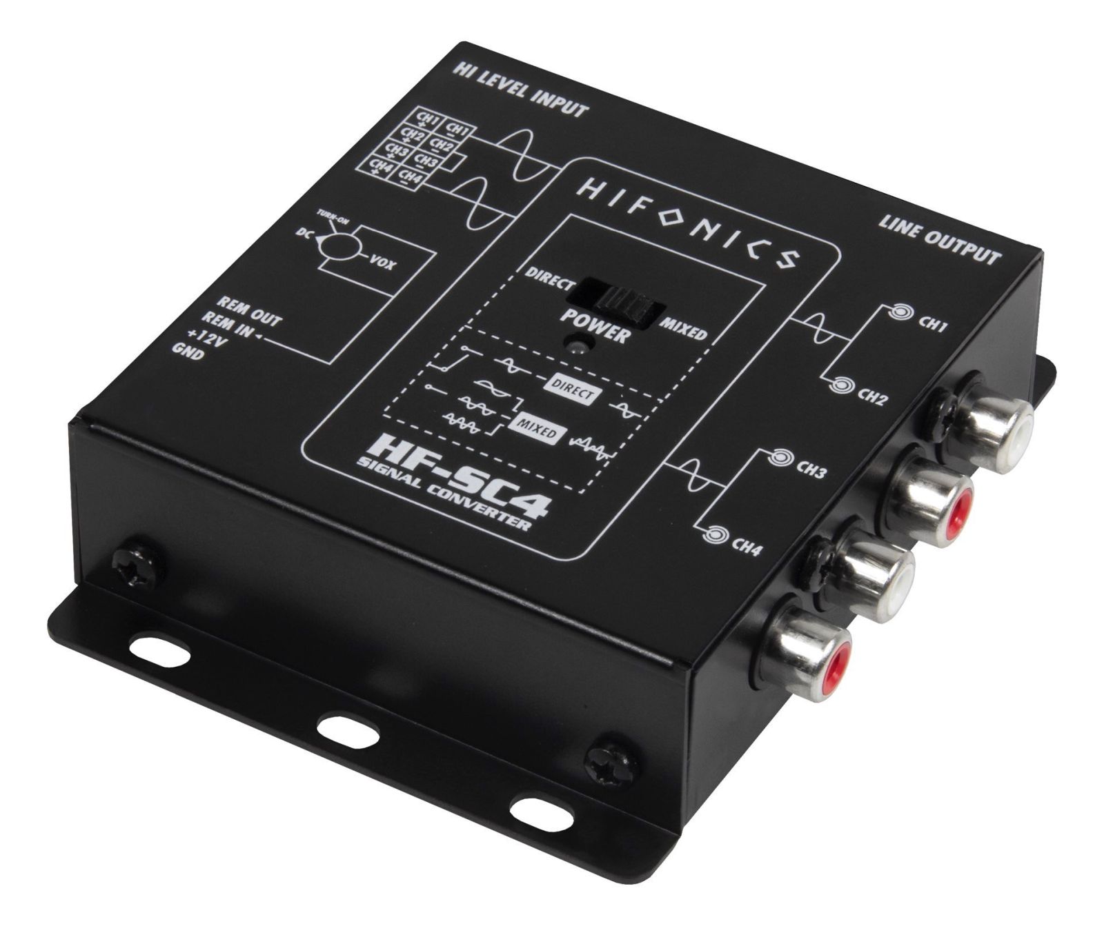 4-Kanal High-Low Adapter für OEM-Radios mit EPS • Direct/Mix Schalter zur Summierung verschiedener Lautsprecher-Signale • generiert 12V Remote • Eingangspegel bis 10V RMS • Sehr breites Frequenzband 5Hz - 60kHz @ -1 dB • Ultra Low Noise SNR <116dB @4VRMS • Ultra Low THD+N 4VRMS >0.001% • Steckbrücke für "Floating Ground" eliminiert unerwünschte Störgeräusche wie z.B. Lichtmaschinenpfeifen
