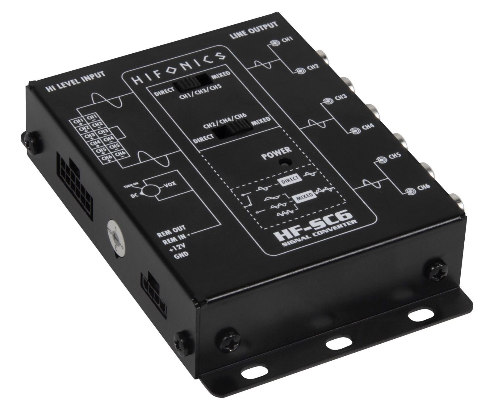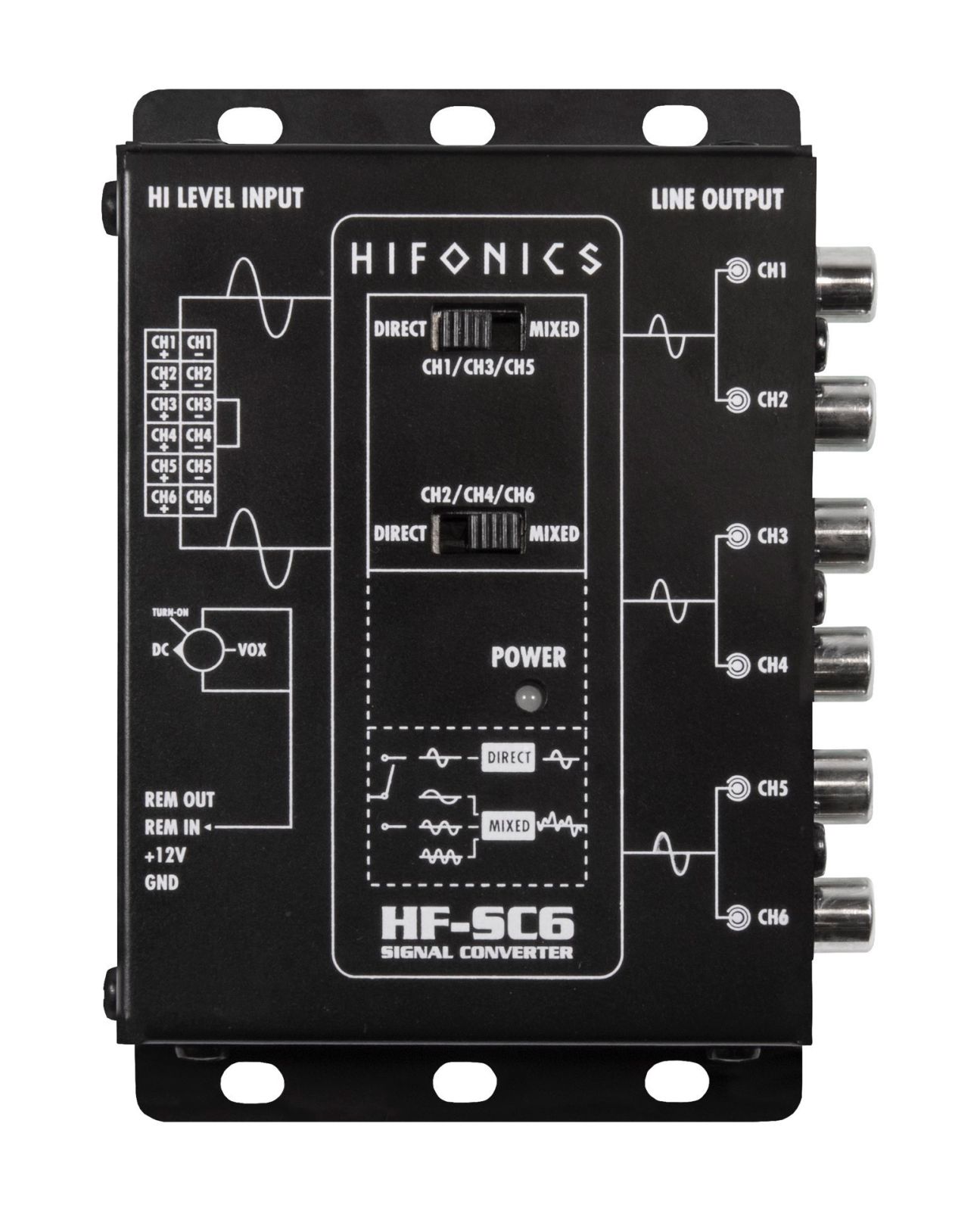6-Kanal High-Low Adapter für OEM-Radios mit EPS • Direct/Mix Schalter zur Summierung verschiedener Lautsprecher-Signale • generiert 12V Remote • Eingangspegel bis 10V RMS • Sehr breites Frequenzband 5Hz - 60kHz @ -1 dB • Ultra Low Noise SNR <116dB @4VRMS • Ultra Low THD+N 4VRMS >0.001% • Steckbrücke für "Floating Ground" eliminiert unerwünschte Störgeräusche wie z.B. Lichtmaschinenpfeifen