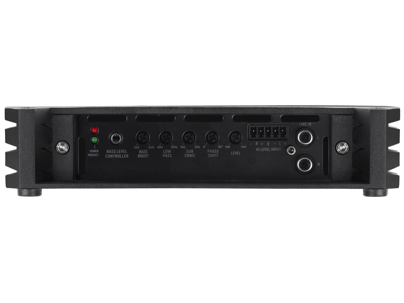 1 x 300 / 525 / 750 W RMS @ 4 / 2 / 1 ? • Lowpass 40-150 Hz • Subsonic Filter 10-35 Hz • High-Level Inputs mit EPS • Auto Turn On • Bass-Boost 0-12 dB • Phasenregler 0-180° • inkl. Bass-Remote • Wirkungsgrad bis 85%