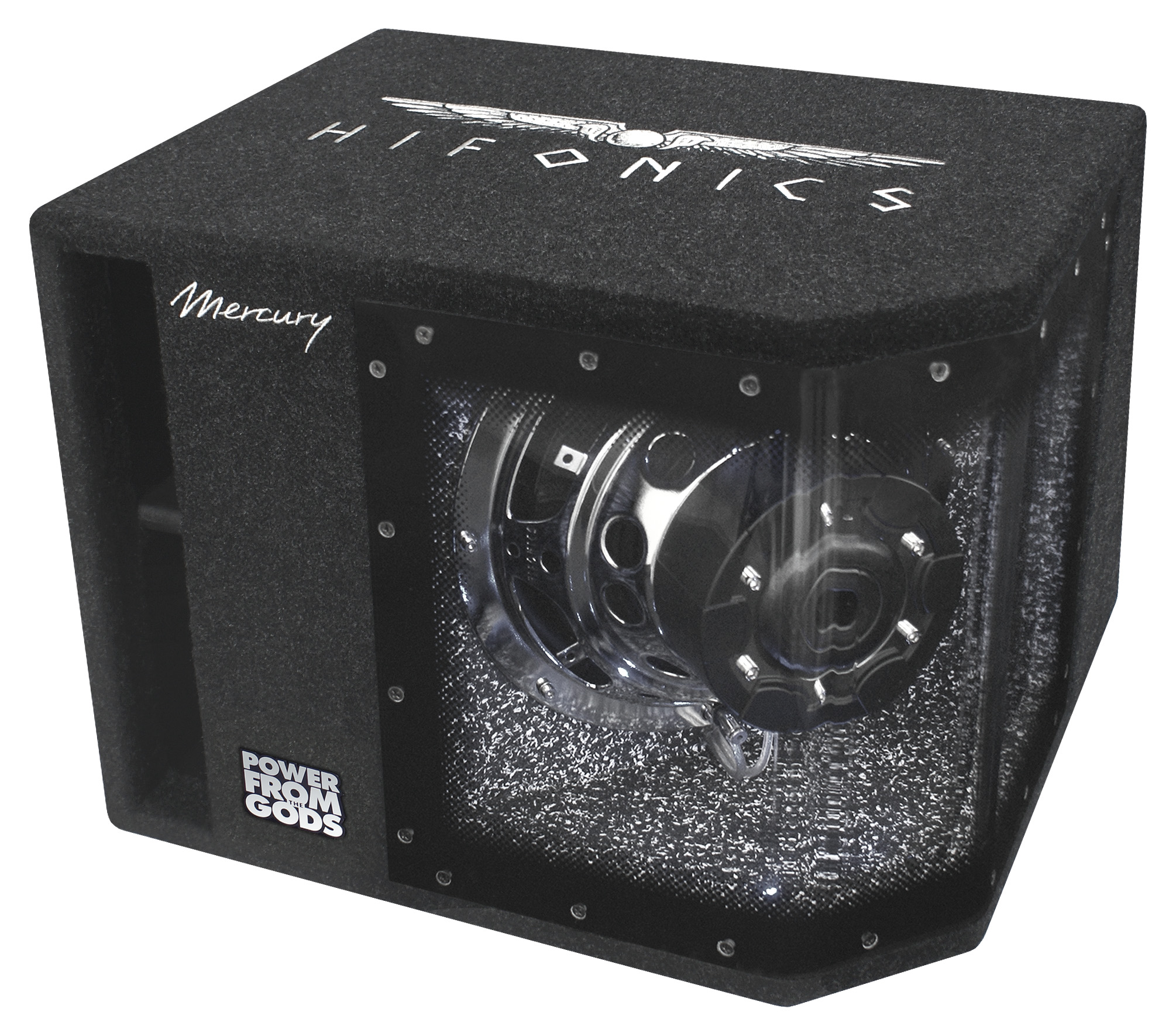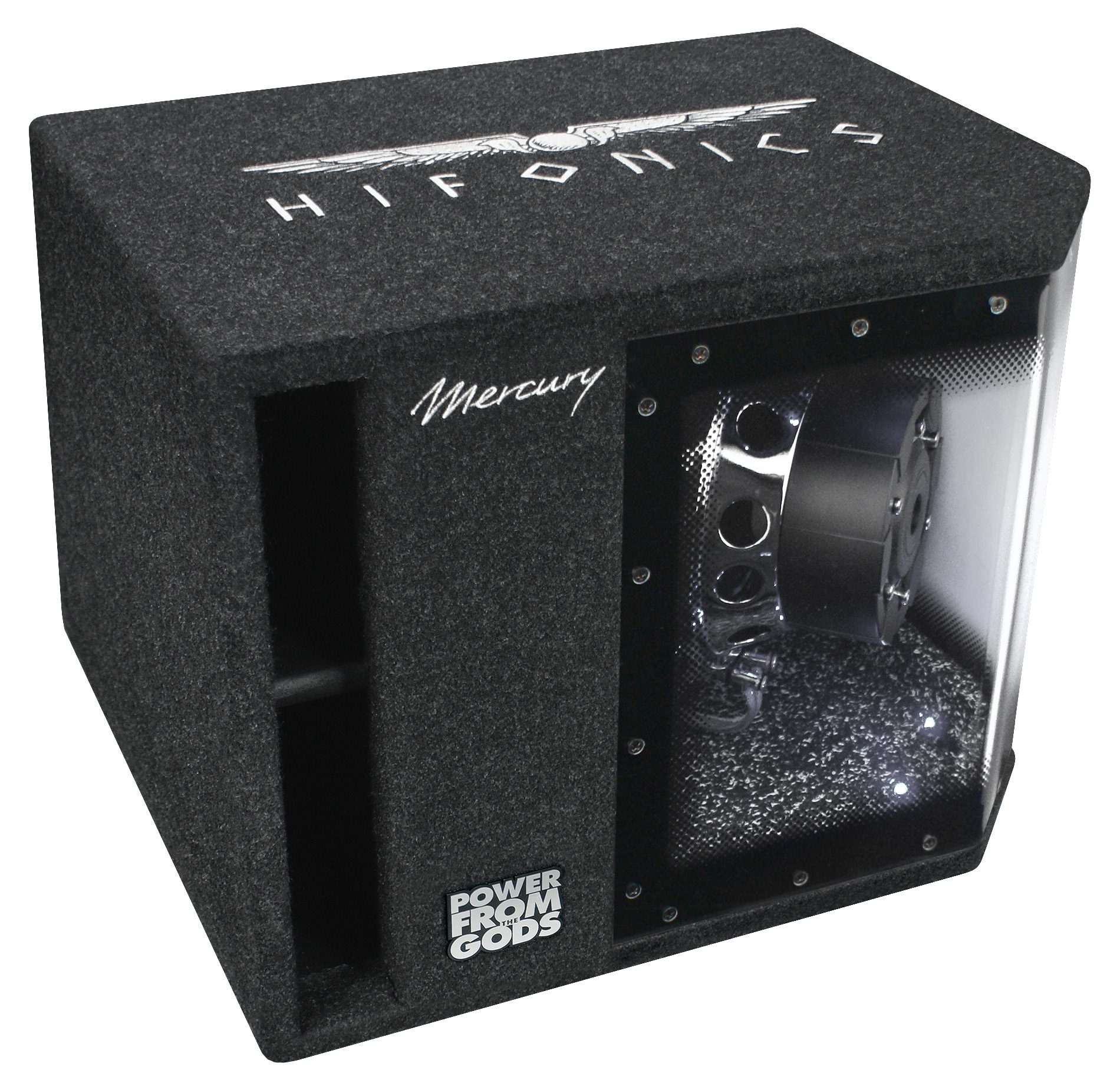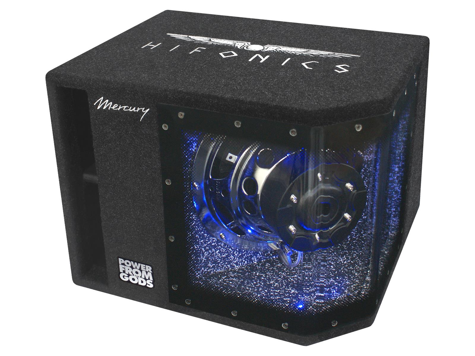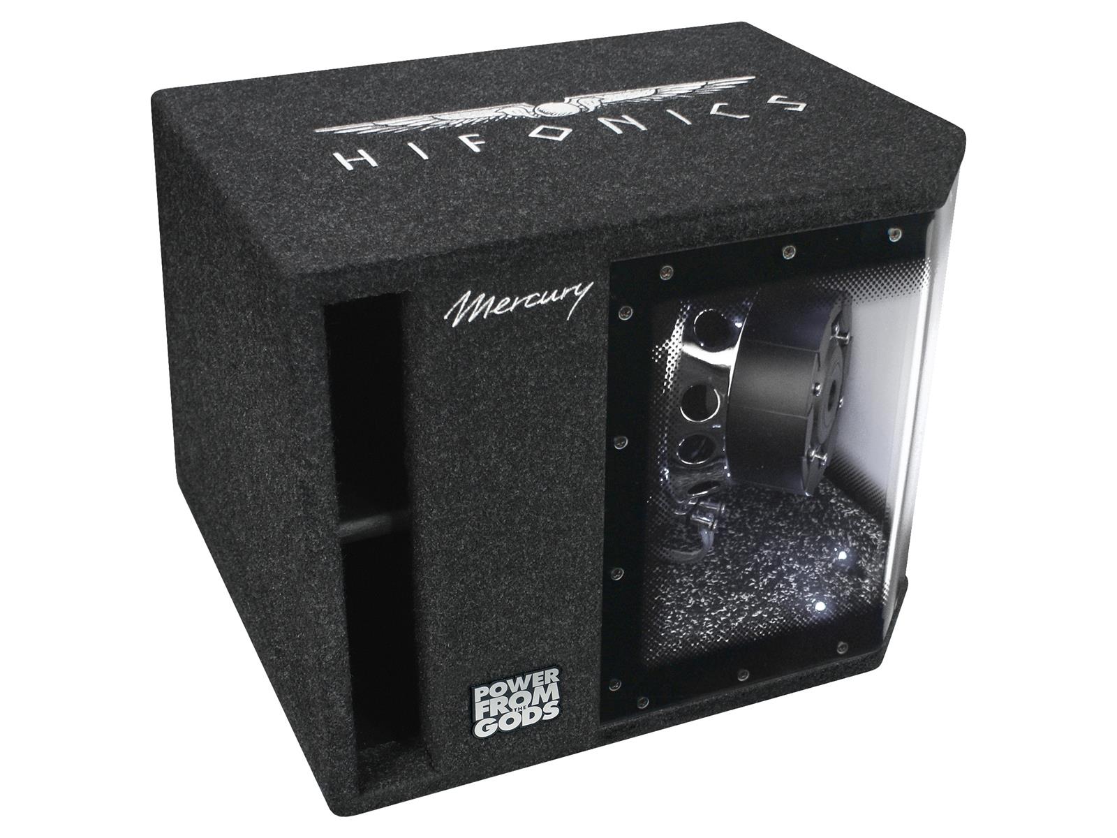 Leistung 400 W RMS / 800 W max. • Impedanz 4 ? • 10" Single Bandpass Box mit Plexiglas • Logo-Stick • umschaltbare LED-Beleuchtung blau oder weiß • 10" Woofer mit Dual-Magnet und 2.0" (50 mm) VC
