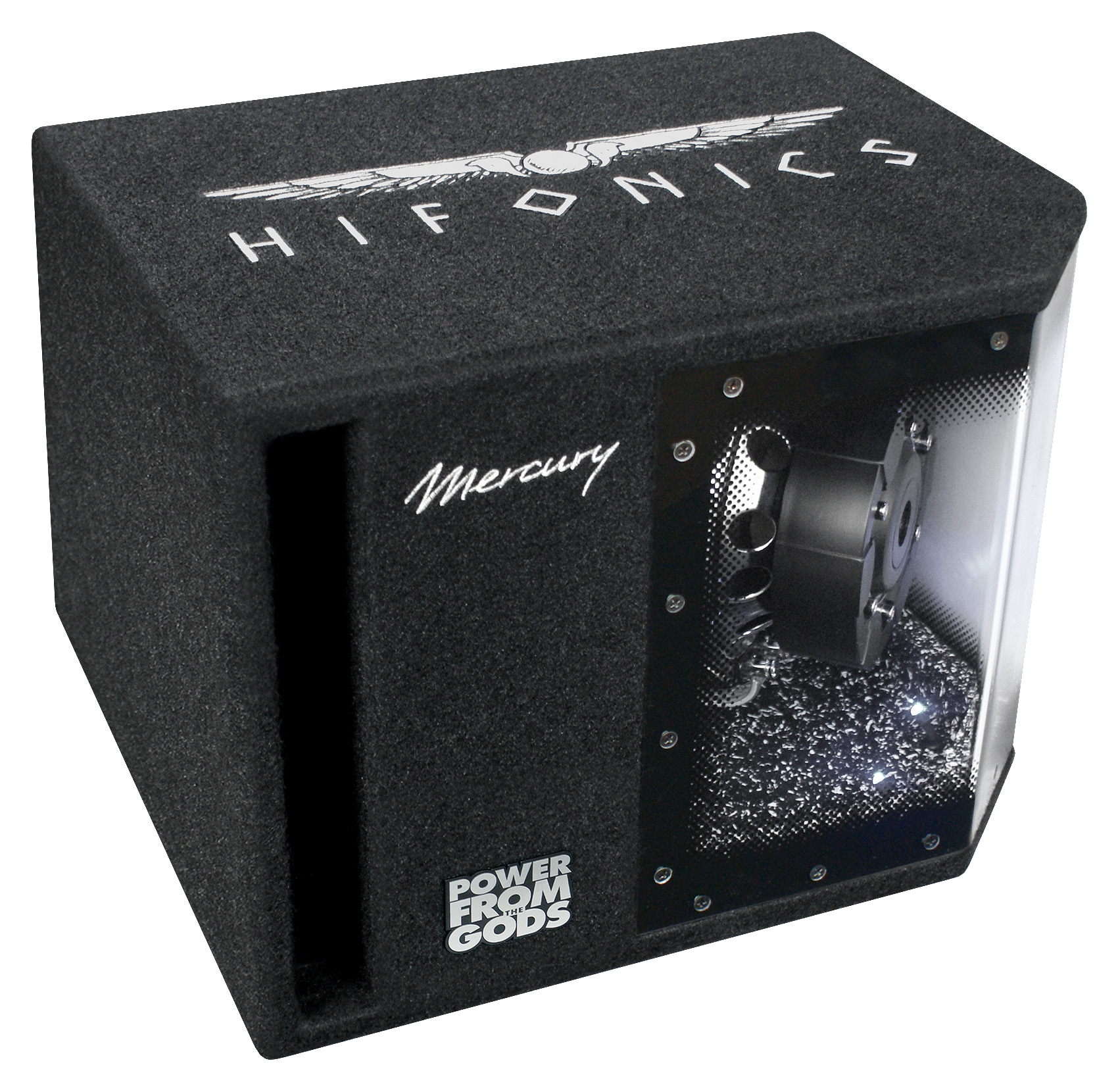 Leistung 300 W RMS / 600 W max. • Impedanz 4 ? • 8" Single Bandpass Box mit Plexiglas • Logo-Stick • umschaltbare LED-Beleuchtung blau oder weiß • 8" Woofer mit 2.0" (50 mm) VC