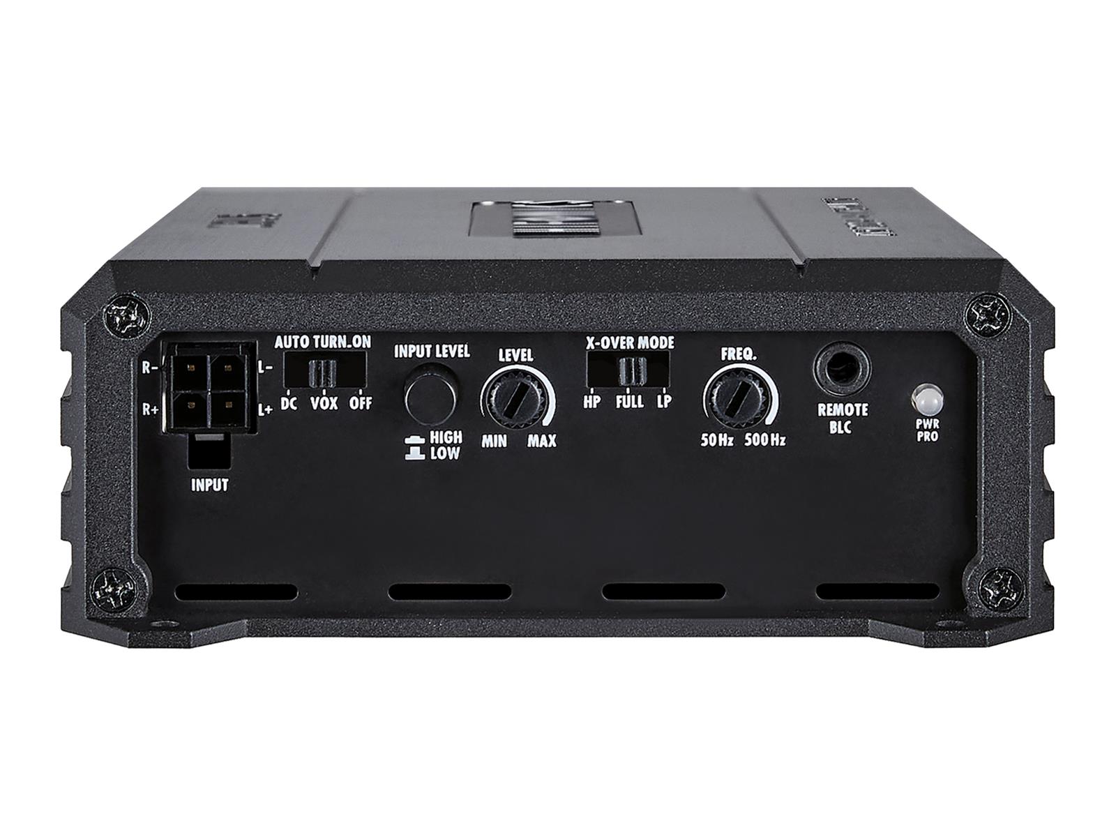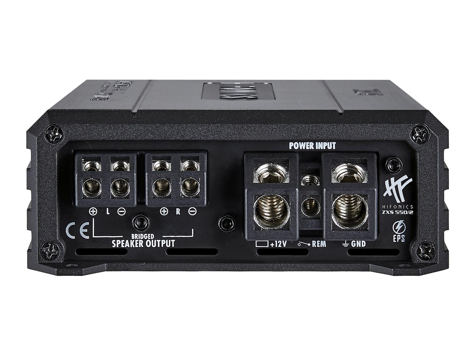 2 x 150 / 275 W RMS @ 4 / 2 ? (Class D) 1 x 550 W RMS gebrückt @ 4 ? • HP/LP 50-500 Hz • High-Level Inputs mit EPS • Auto Turn On • Start/Stopp fähig • inkl. Bass-Remote • 92% Wirkungsgrad