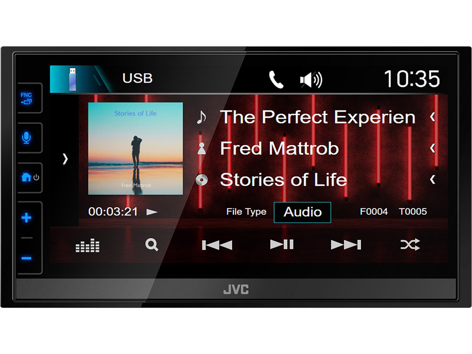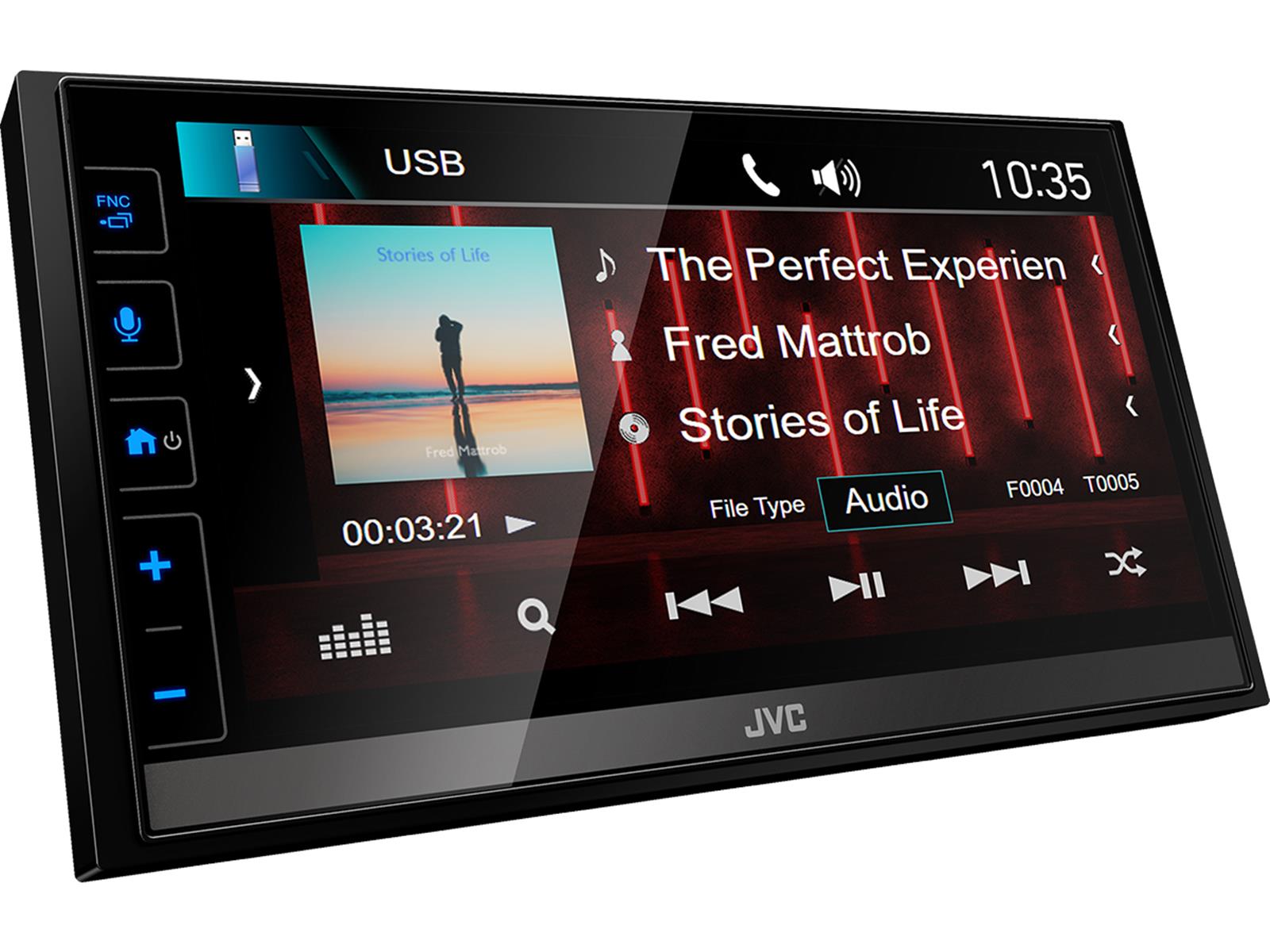- Erlaubt das Spiegeln des Displays kompatibler Android Smartphones über USB-Kabel ("Mirroring OA for JVC" App erforderlich)