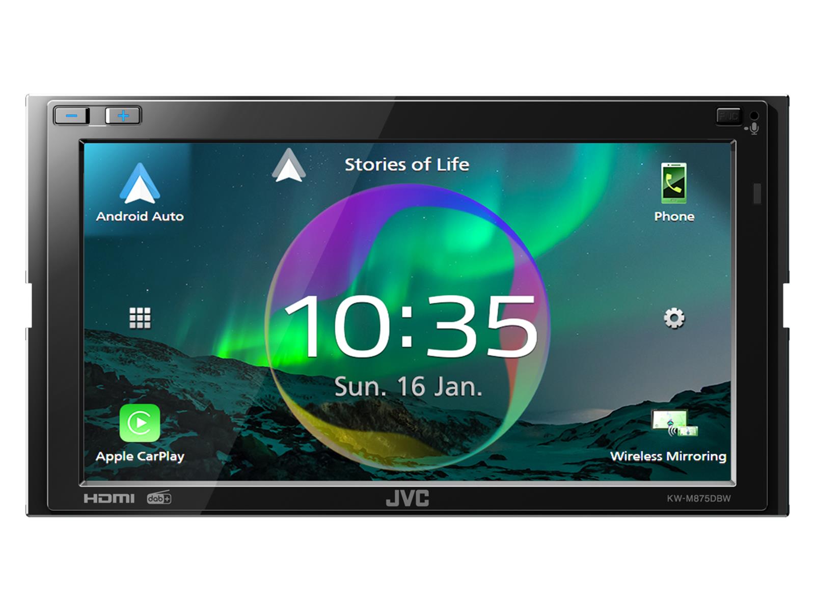 Der KW-M875DBW bietet umfangreiche Multimedia-Funktionen und ist der ideale Spielpartner für iPhones und Android Smartphones, da er sowohl Apple CarPlay als auch Android Auto integriert hat. Dabei lassen sich diese für das Auto optimierten Dienste über WiFi auch komplett kabellos nutzen. Insgesamt vier Kameraeingänge bieten Anschluss für Front-/Rück- und Seitenkameras. Ein moderner USB-C-Anschluss sorgt für den schnellen Datentransfer und lädt das Smartphone in kürzester Zeit wieder auf. Und dank geringer Einbautiefe lässt sich der Moniceiver auch überall dort einbauen wo wenig Platz ist.