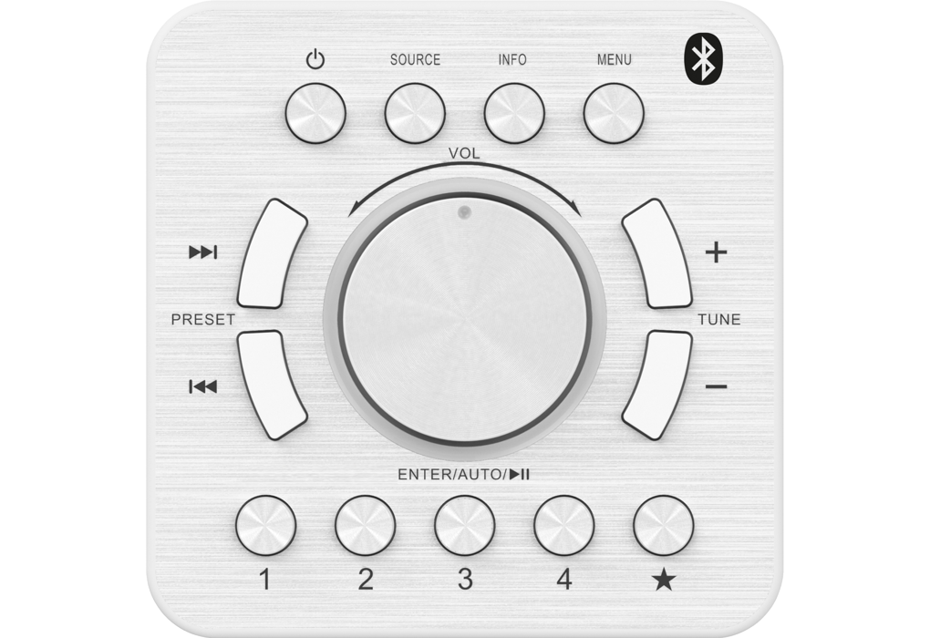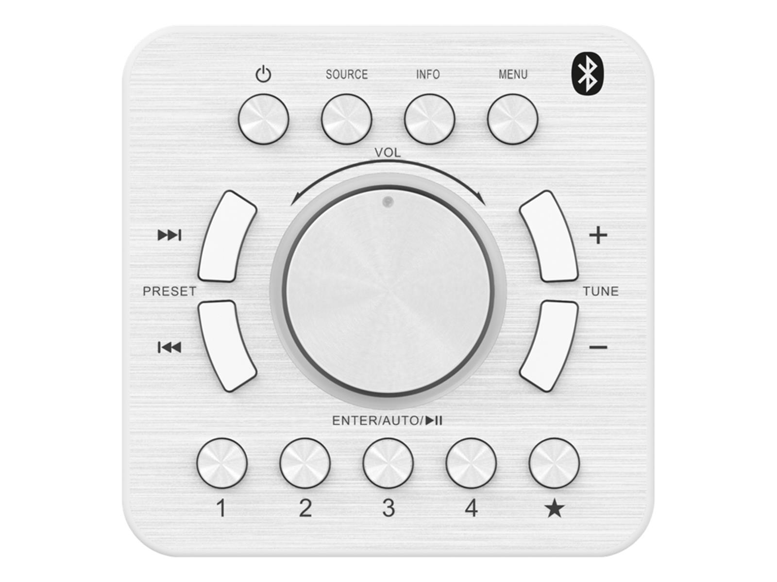 - DAB+ und UKW RDS-Empfänger mit 20 Stationsspeichern und 4 Direktzugriffstasten