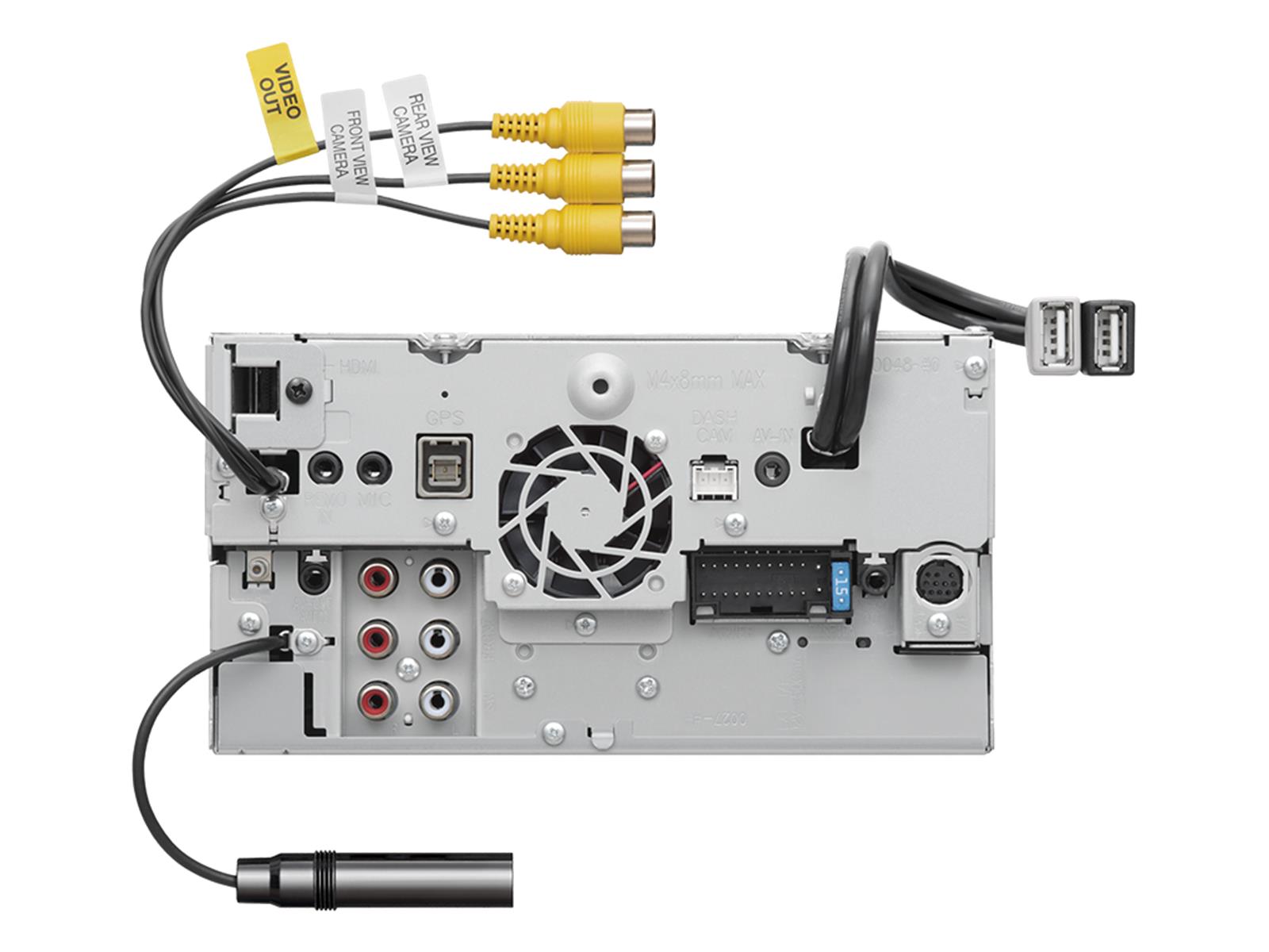 - 17,3 cm (6,8“) hochauflösender WVGA-Doppel-DIN-Monitor mit Touch Panel Steuerung