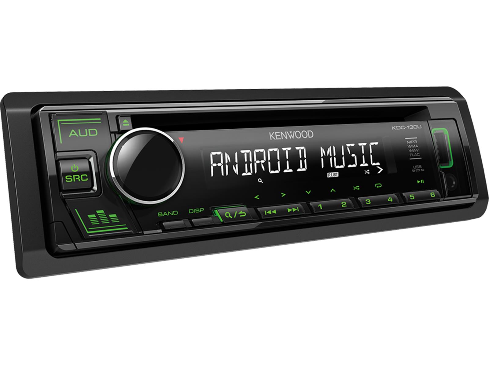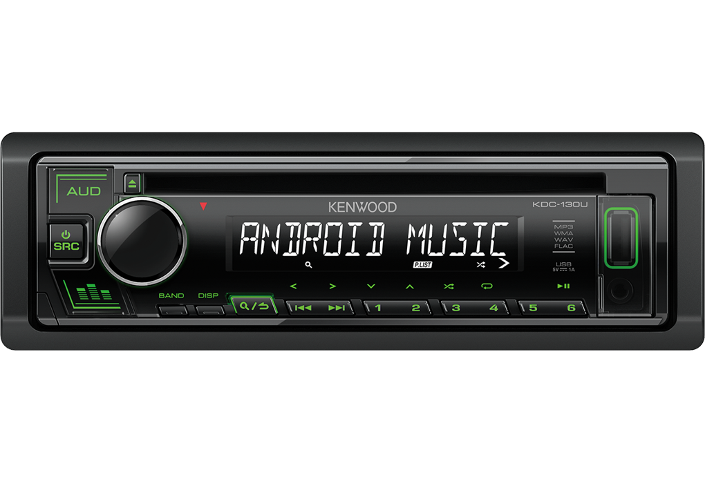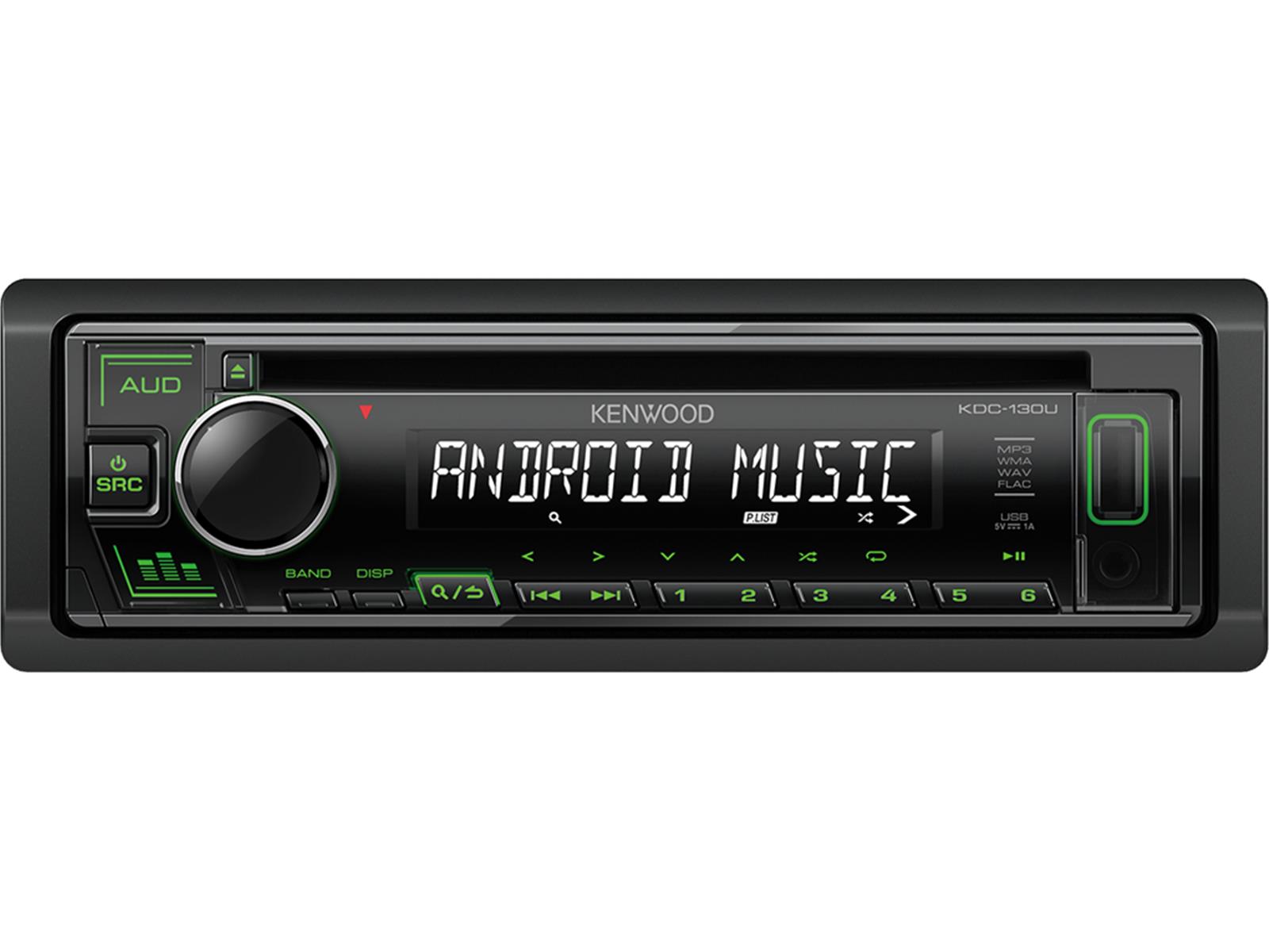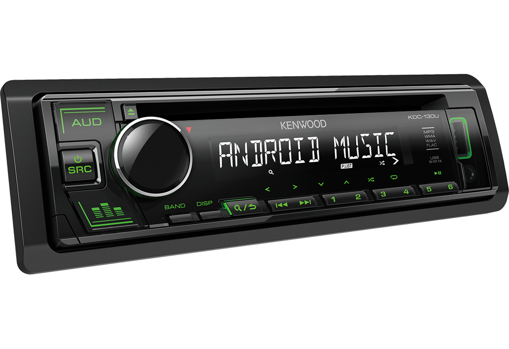 Das Modell KDC-130UG hat eine weiße Displayanzeige und grüne Tastenbeleuchtung.