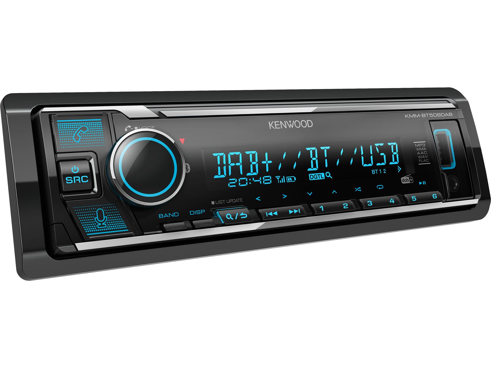 Das Kenwood KMM-BT508DAB ist ein 1 DIN Autoradio mit kurzem Gehäuse (ohne CD Laufwerk) und variabler Tasten- und Displaybeleuchtung. Die wesentlichen Funktionen sind: