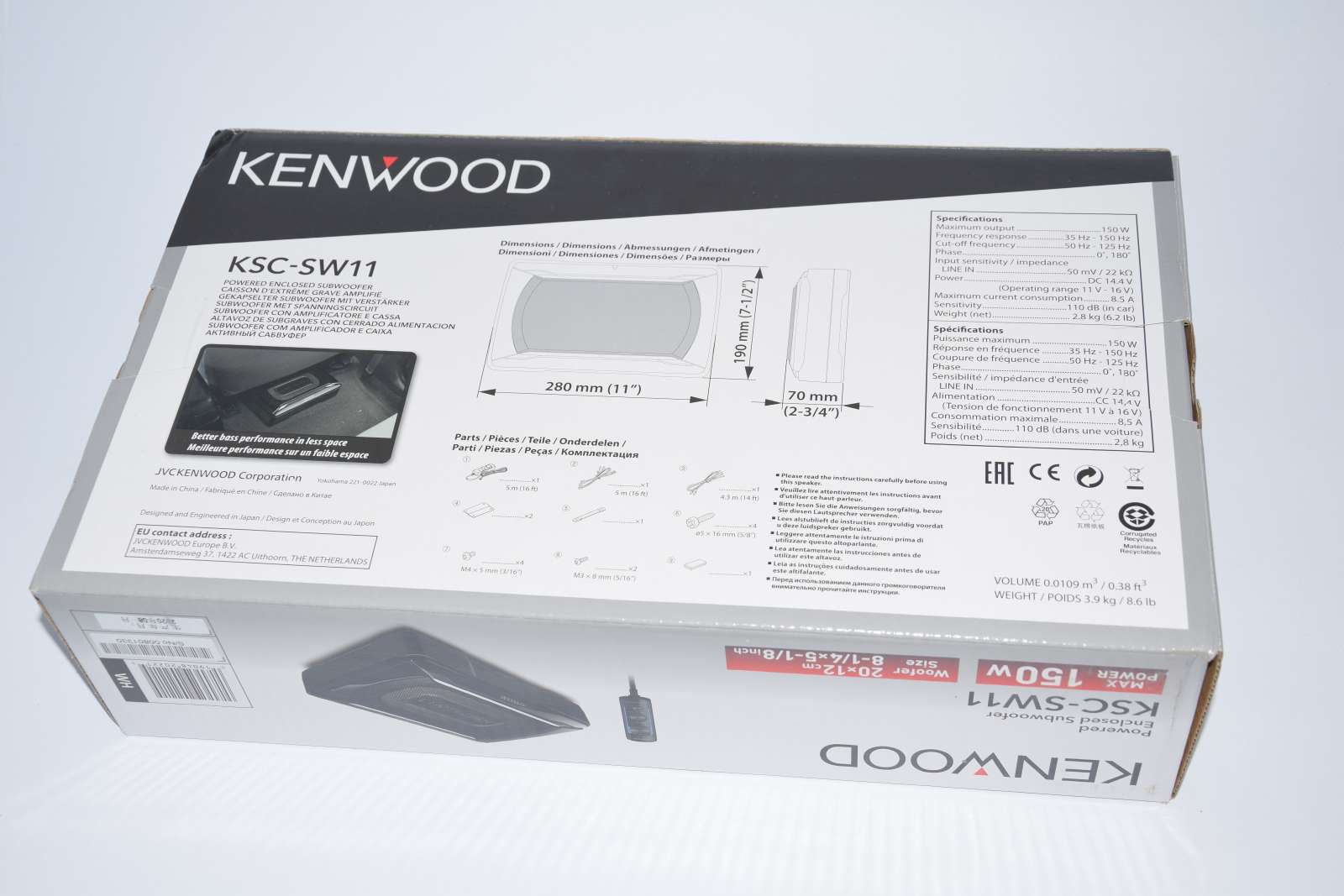 Der Kenwood KSC-SW11 ist ein kompakter, aktiver Subwoofer mit einem 200 x 120mm Chassis. Mit den kompakten Abmessungen von 190 x 70 x 280mm und einem Gewicht von 2,8 kg kann man diesen in viele Fahrzeuge unter oder hinter den Sitzen montieren oder im Kofferraum. Der Verstärker ist gleich im Gehäuse integriert und reduziert damit den Installationsaufwand.