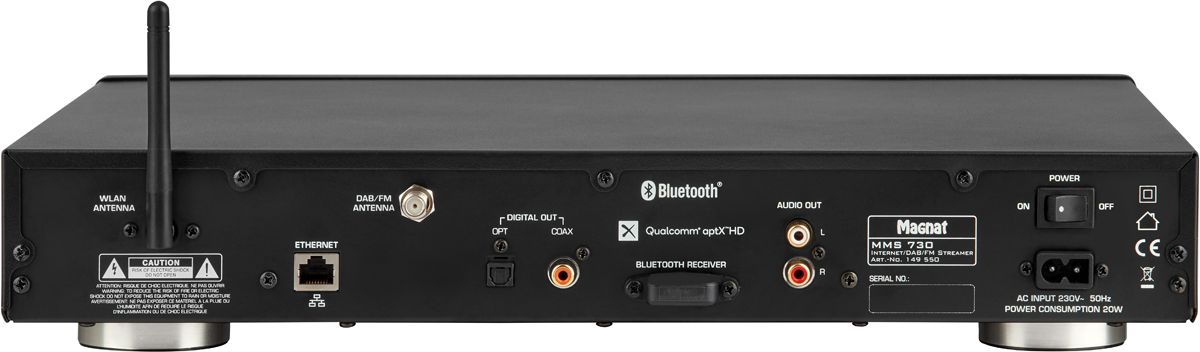 All das ist verpackt in ein stabiles Metallgehäuse mit einer massiven, gebürsteten Aluminiumfront. Das zweizeilige Klartext-Display informiert in drei Helligkeitsstufen. Mit wenigen Bedienelementen lassen sich alle wesentlichen Funktionen kontrollieren, den kompletten Zugriff auf die Funktionsvielfalt bietet die MAGNAT STREAMING APP. Mit dieser lässt sich der MSS 730 auch in ein Multiroom-System einbinden und steuern, sodass man in mehreren Räumen in den Genuss der Quellenvielfalt kommt.