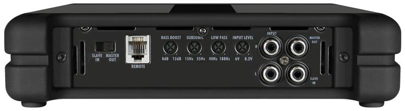 1 x 300 / 500 / 750 Watt RMS an 4 / 2 / 1 ? - Class-D Aufbau mit bis zu 85% Wirkungsgrad - Subsonic 15-55 Hz - Lowpass 40-180 Hz - Master-/Slave Funktion für Brückenbetrieb - Bass-Boost 0-12 dB - inklusive Bass-Remote