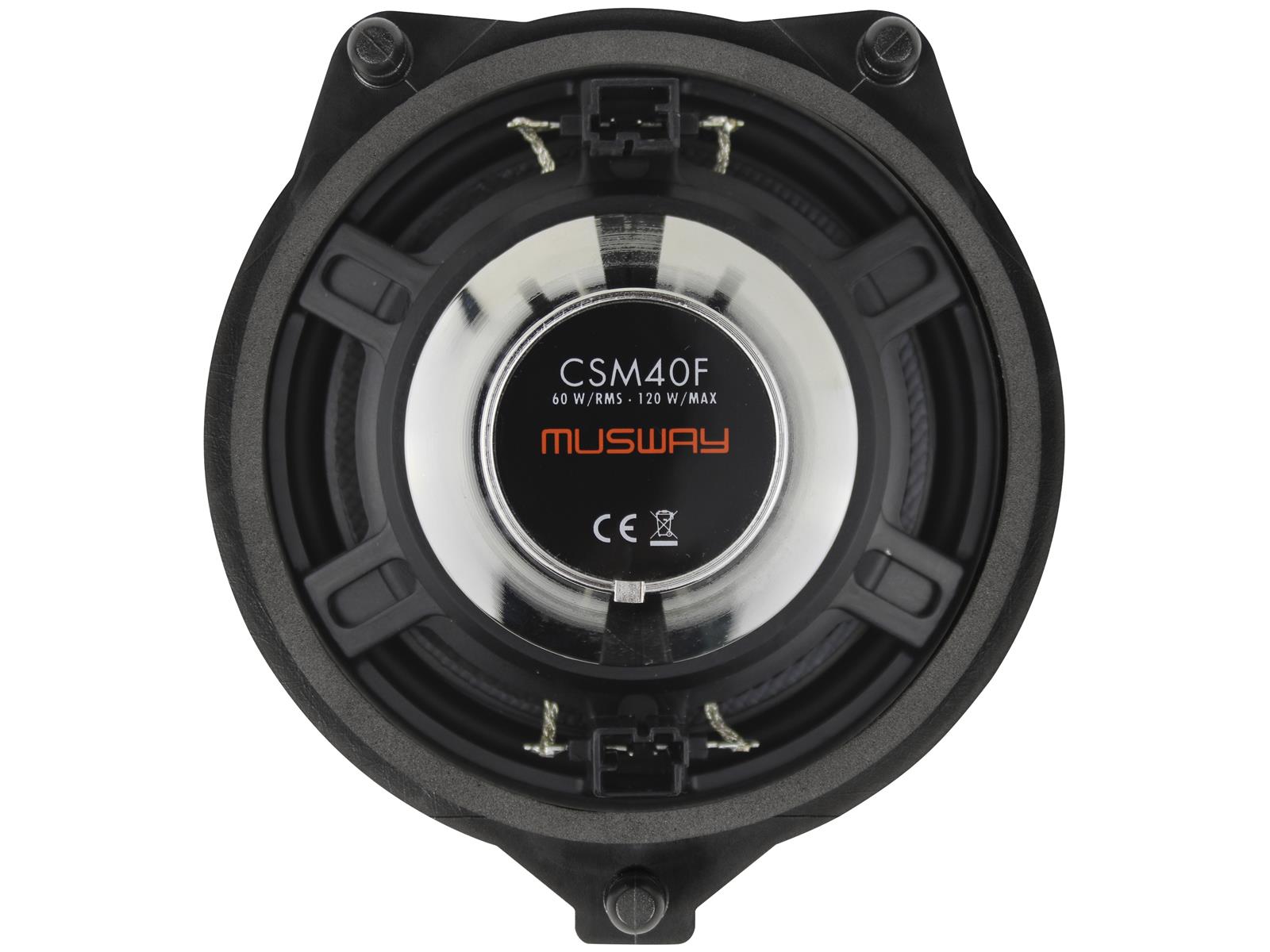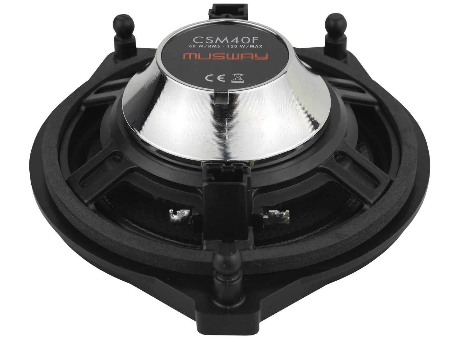 Bei den neuen CSM Lautsprechern für Mercedes-Benz Fahrzeuge stand während der Entwicklung ebenfalls eine deutliche Verbesserung des Klangs und eine höhere Belastbarkeit im Vergleich zu den Originalsystemen im Vordergrund. Superleichte Glasfaser-Membranen und effiziente Neodym-Magnet-Antriebe sorgen auch bei den CSM Modellen schon bei geringer Verstärkerleistung für wirkungsgradstarke Soundperformance. Die 10 cm Lautsprecher sind hingegen mit nicht gerade kleineren 30 mm CCAW Schwingspulen bestückt, die ebenfalls für grandiose Klangerlebnisse sorgen. Der 25 mm Titan-Hochtöner CSM1T (auch bei CSM4.2C enthalten) mit Neodym-Magnet Antrieb überzeugt mit linearem Frequenzgang bis über 20 kHz und kristallklaren Höhen.