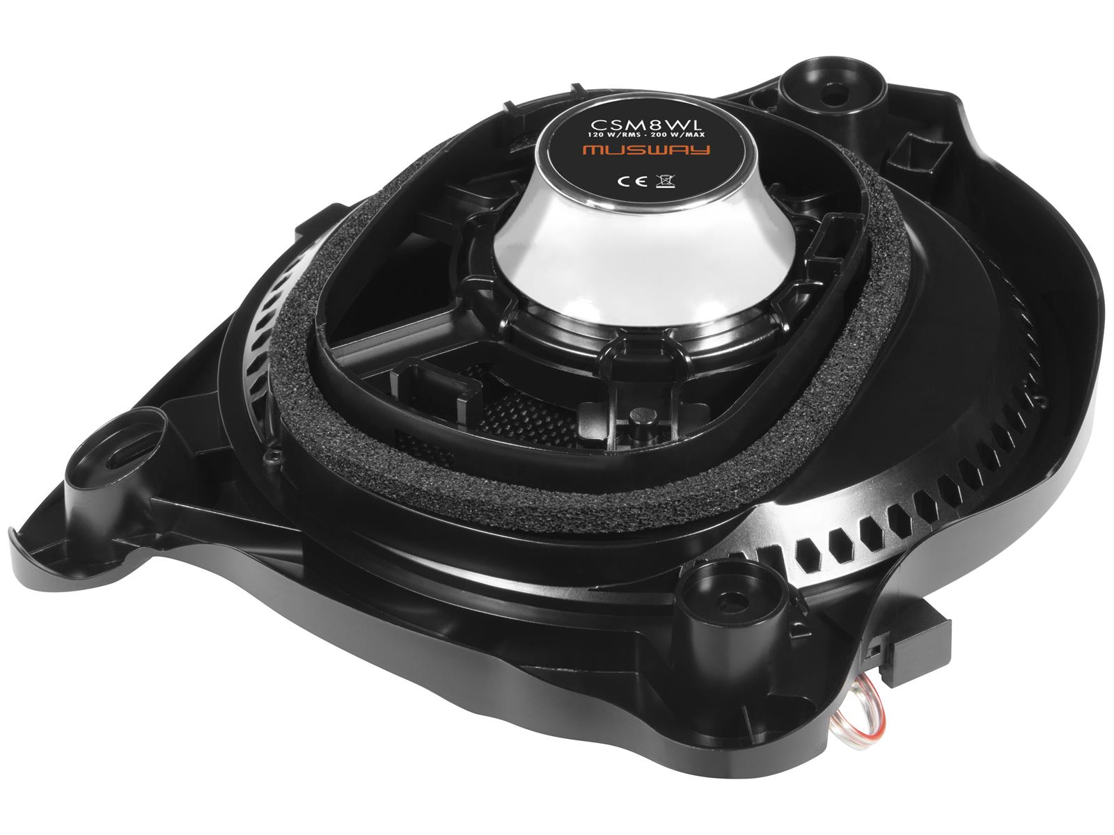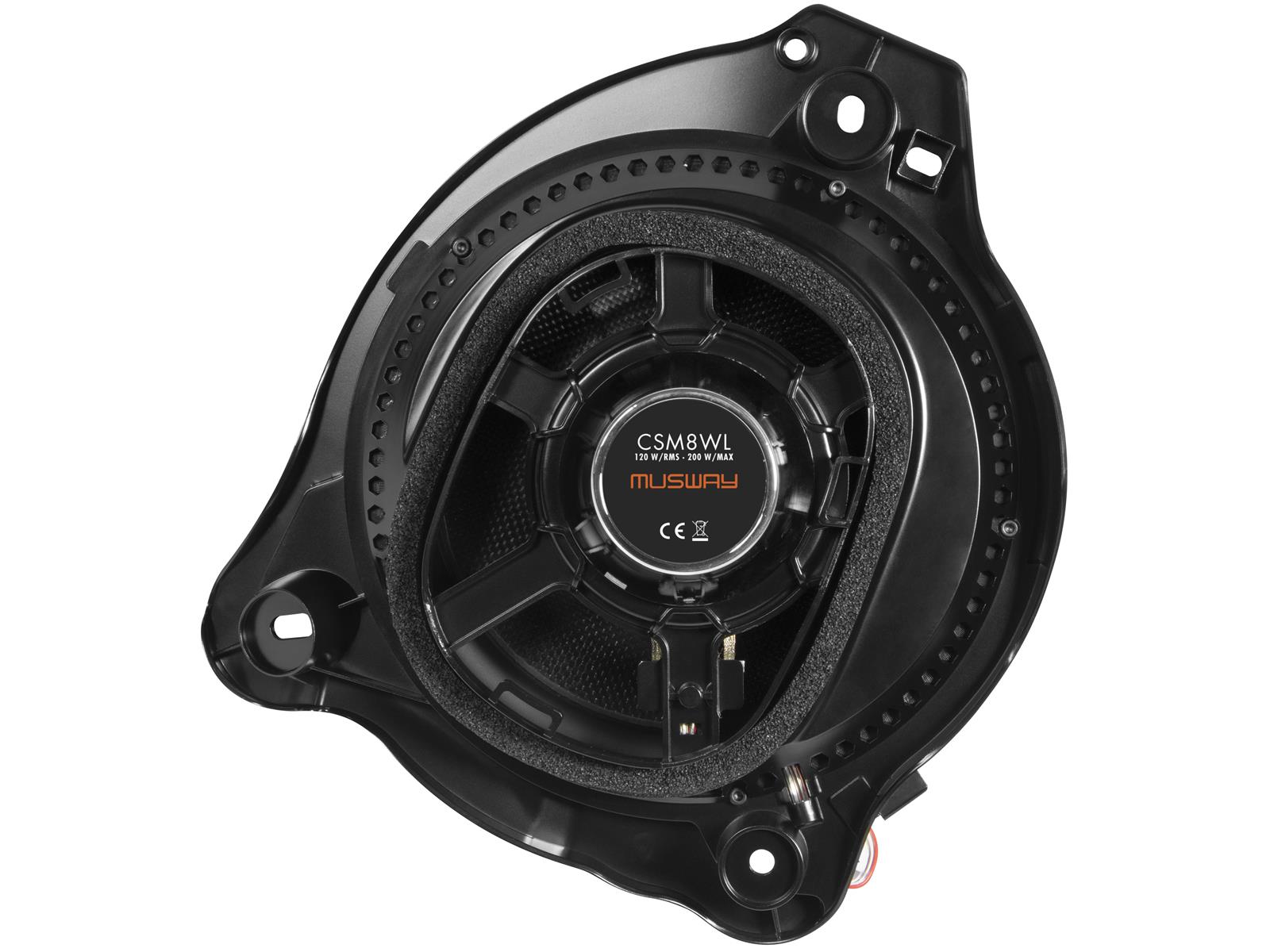 Bei den neuen CSM Lautsprechern für Mercedes-Benz Fahrzeuge stand während der Entwicklung ebenfalls eine deutliche Verbesserung des Klangs und eine höhere Belastbarkeit im Vergleich zu den Originalsystemen im Vordergrund. Superleichte Glasfaser-Membranen und effiziente Neodym-Magnet-Antriebe sorgen auch bei den CSM Modellen schon bei geringer Verstärkerleistung für wirkungsgradstarke Soundperformance. Bei den 20 cm Basslautsprechern wird dank der effizienten 38 mm CCAW Schwingspulen ein Schalldruck von stolzen 89 dB/W/m generiert.