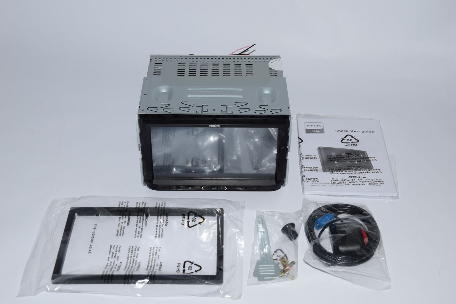 Das Philips CE600N ist ein 2 DIN Multimedia Autoradio mit Navigationseinheit. Mit der Bluetooth Schnittstelle ist es möglich, in Verbindung mit dem internen Mikrofon, das Radio als Freisprechanlage zu nutzen. Es ist möglich ein externes Mikrofon nachzurüsten. Die Navigationssoftware ist im Lieferumfang.