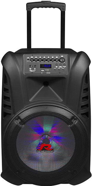 Portable Event Box • integrierte Class A/B Endstufe mit 120 Watt RMS • 38 cm (15") Subwoofer • 1" (25 mm) Horntweeter • integrierter Akku mit bis zu 12h Laufzeit • Bluetooth Audio, USB und SD Karten Slot • Karaoke und Aufnahme Funktion • 2 Funkmikrofone, ausziebarer Trolley-Griff
