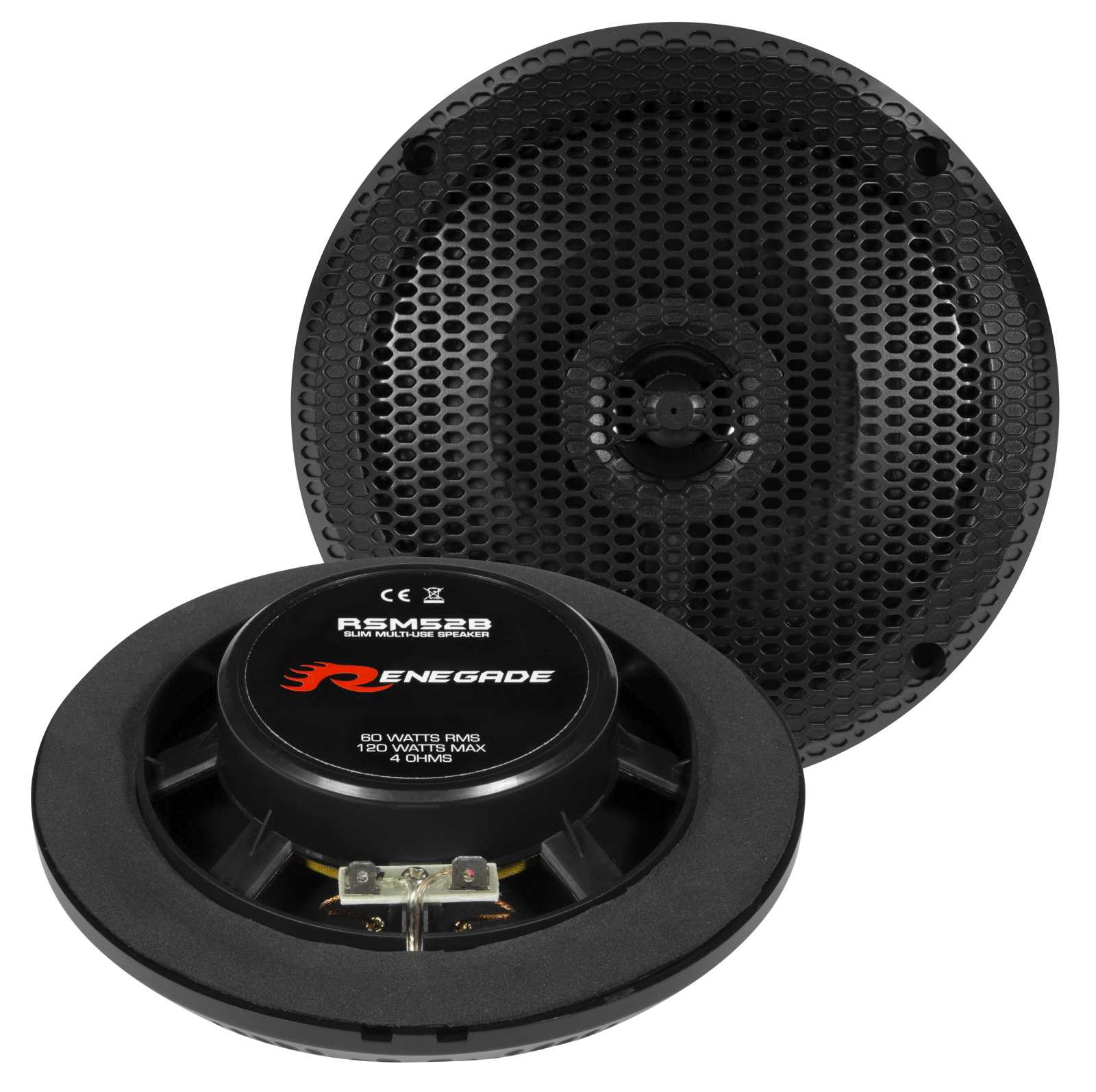 Das spritzwassergeschützte Renegade Lautsprecherset RSM52B ist für den Einsatz in feuchten Räumen oder Booten geeignet. Die Einbautiefe dieses Systems ist besonders gering geblieben. So ist es auch möglich diesen Lautsprecher in Decken einzulassen, die nicht besonders viel Freiheit für einen Lautsprecher bieten.