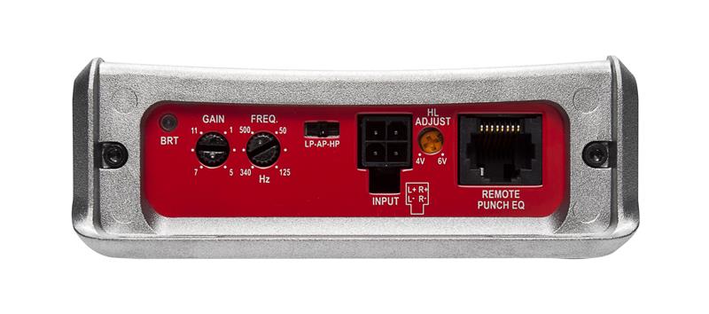 2 x 100 / 150 Watt RMS an 4 / 2 ? 1 x 300 Watt RMS gebrückt an 4 ? - Patentierte Boosted-Rail Technologie - HP / LP 50-500 Hz - Auto-Turn-On - High Level Inputs - optional PEQ Bass-Remote - 75% Wirkungsgrad - AP-Power: 2x108/181 an 4/2 ? oder 1x362 Watt RMS gebrückt an 4 ?