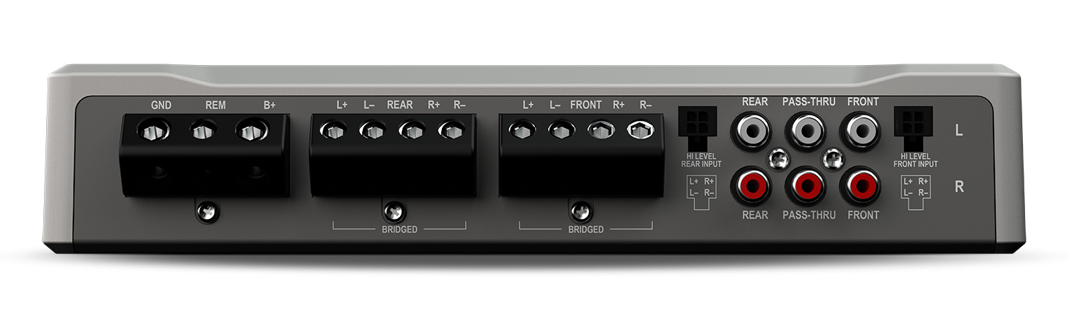 4 x 50 / 75 Watt RMS @ 4 / 2 Ohm • Class-D 2 x 150 Watt RMS gebruckt @ 4 Ohm • High- / Lowpass 50-250 Hz • 0 / 6 / 12 dB Punch EQ @ 45 Hz • C.L.E.A.N.-Setup • Balanced Differential Input • 2/4 CH Input Mode Schalter • High Level Inputs mit Auto Turn On • Schutz gegen Salzwasser / UV Einstrahlung / Korrosion • Inkl. Leistungszertifikat