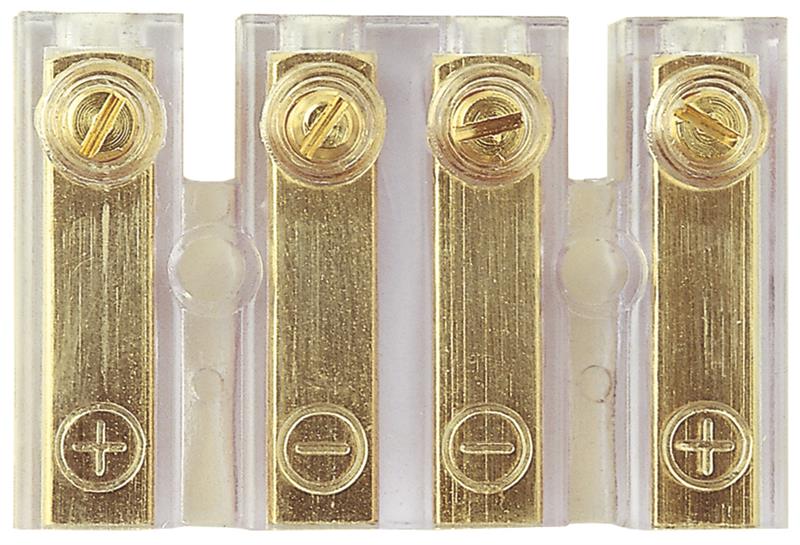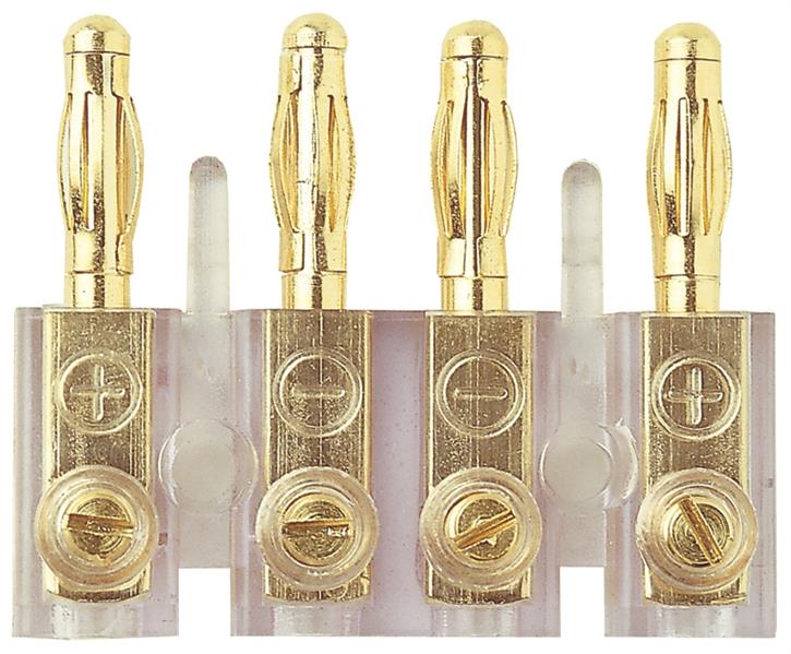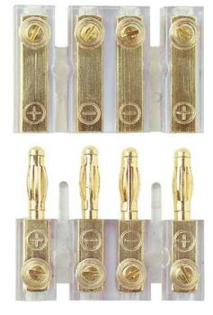 4-fach Banana-Schnellverbinder. Ideal für das schnelle und verpolungssichere An- und Abkoppeln Ihres Subwoofers, Soundboards, etc. für Kabel bis 4mm²