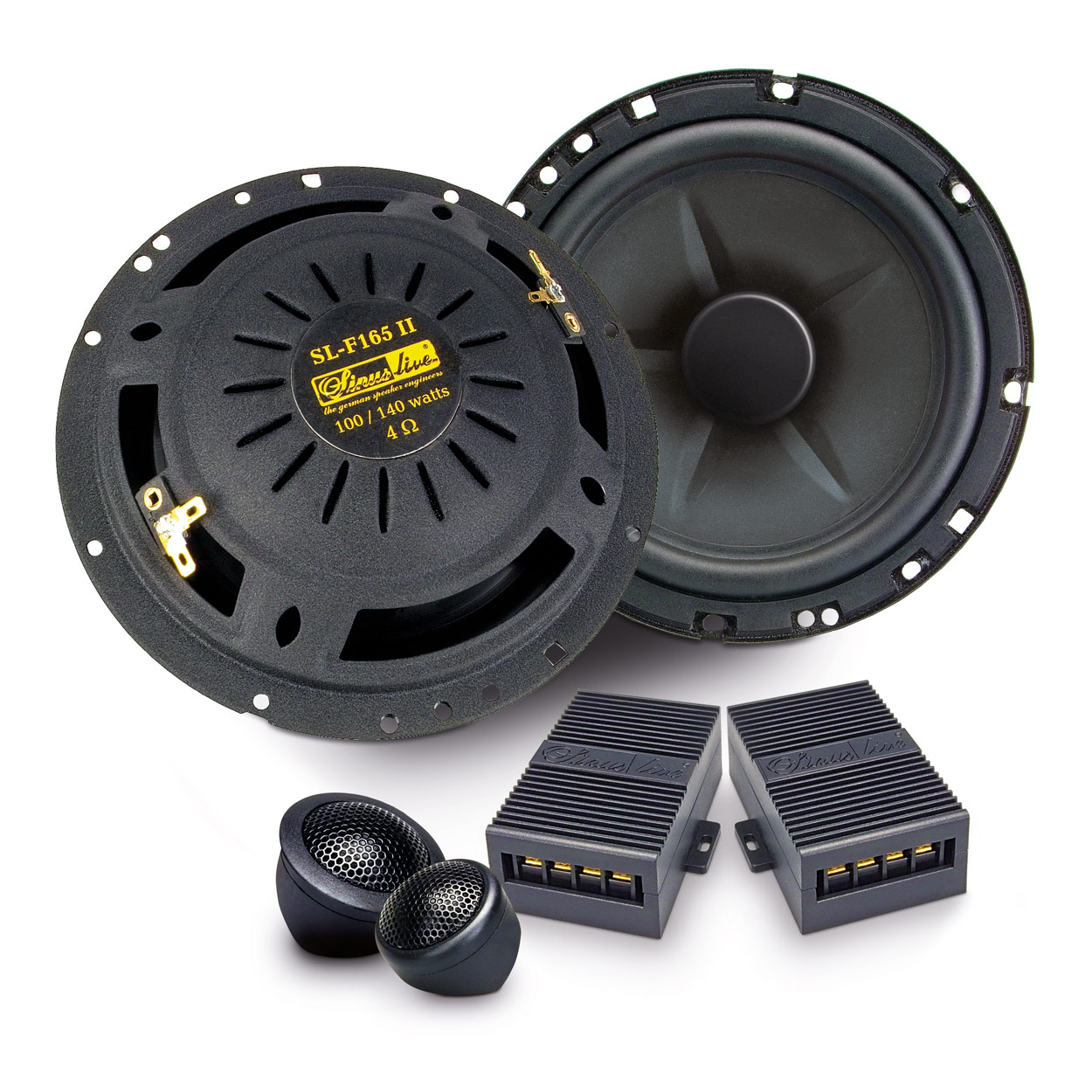 Die Systeme werden paarweise ohne Hochtöner geliefert, um Originallaut-sprecher einfach unter Beibehaltung der bisherigen Einbauhochtöner austauschen zu können.